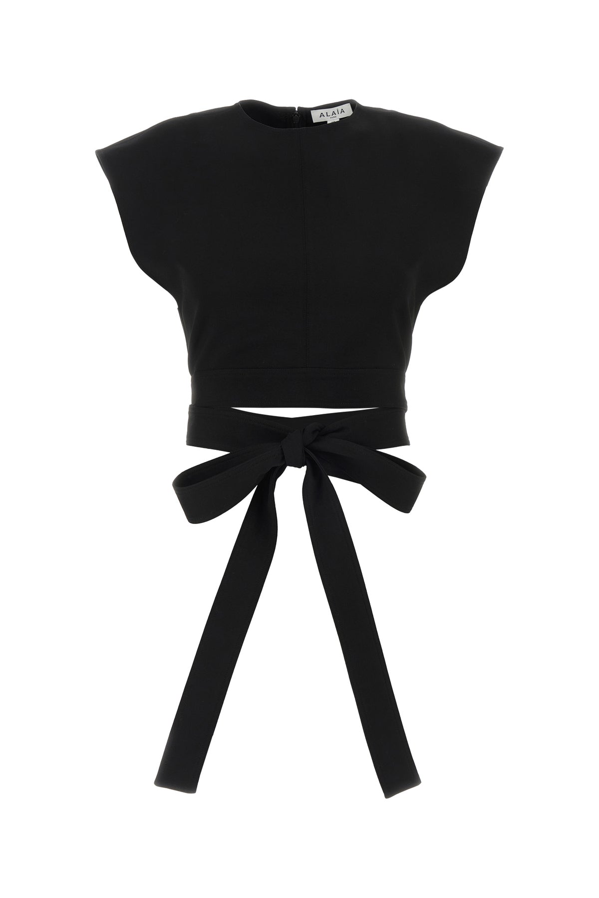 Top realized in stretch wool characterized by laces to tie at the waist.