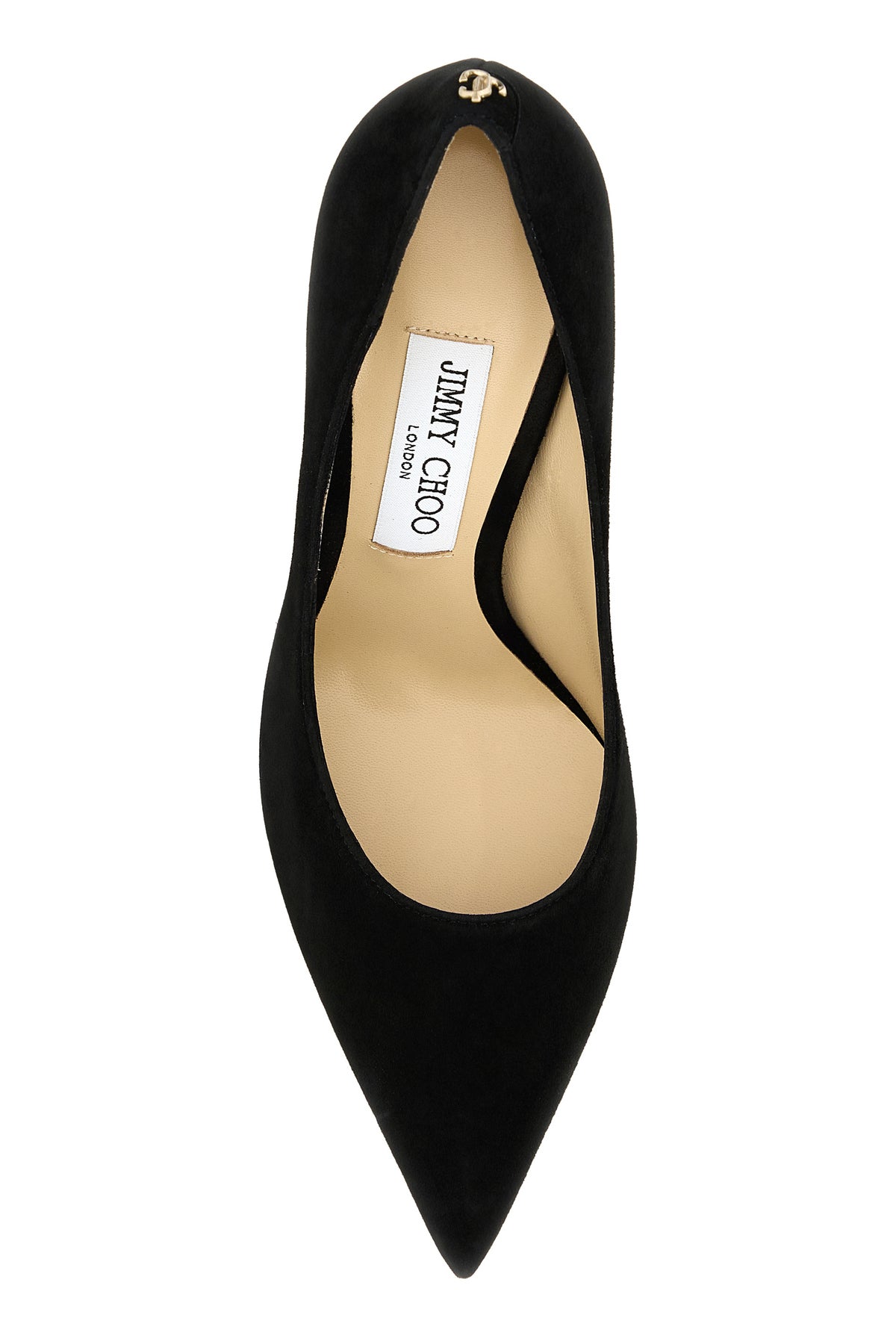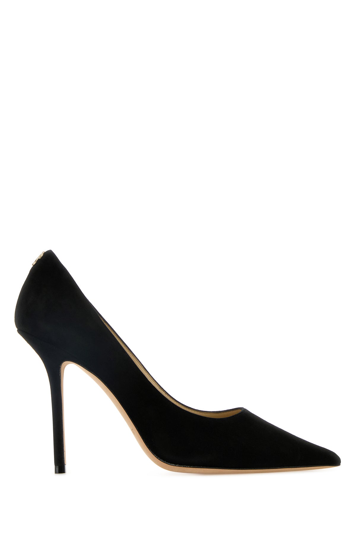 Pumps realized in suede enriched by metal logoed detail at the back.