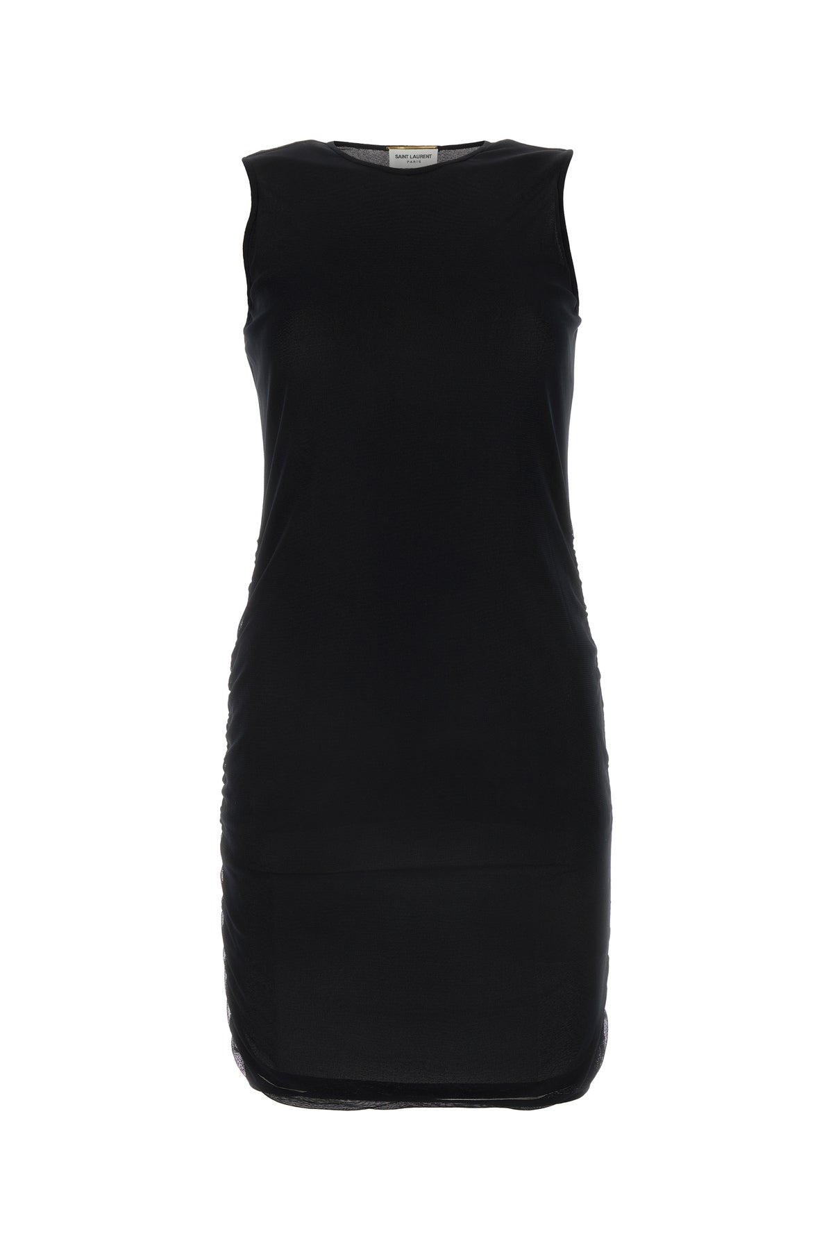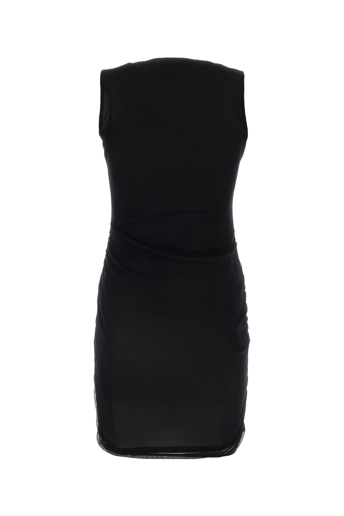 Fitted mini dress realized in tulle characterized by gatherings on the sides.