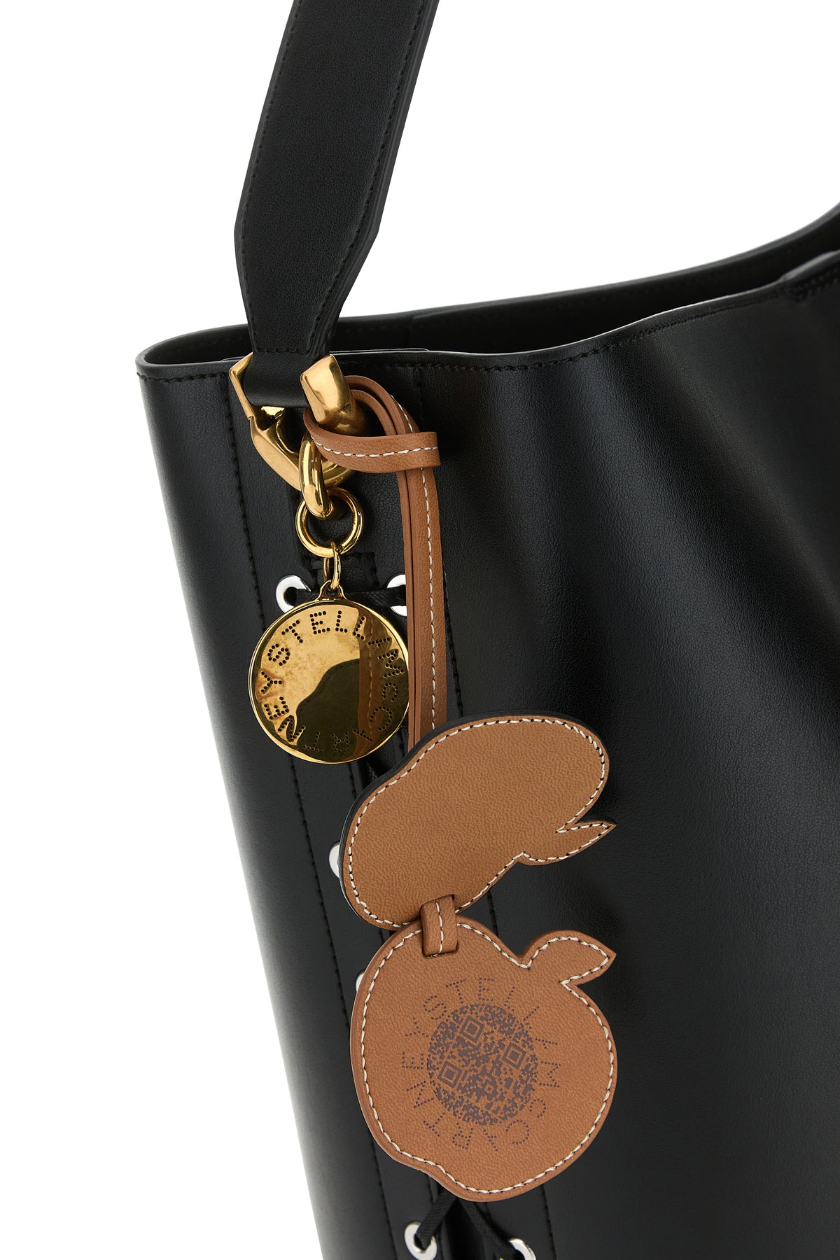 Shopping bag realized in UPPEAL™ characterized by embossed logo at the front enriched by detachable logoed charms.