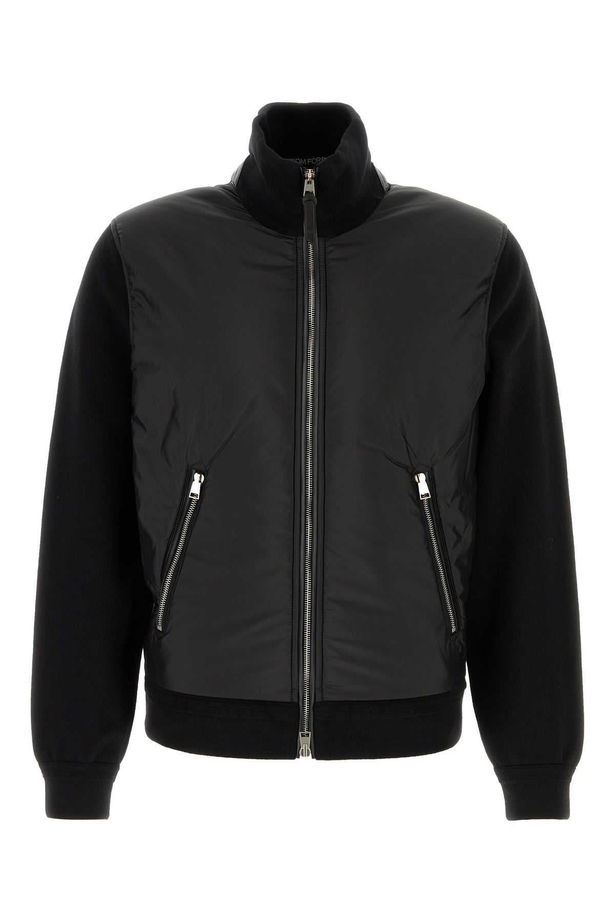 - Ribbed high neck, cuffs and hemline