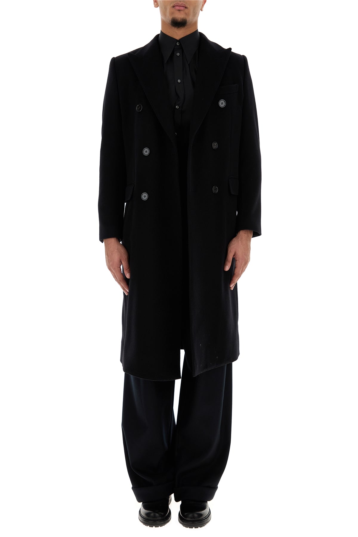 Coat realized in virgin wool and cashmere characterized by lapels.