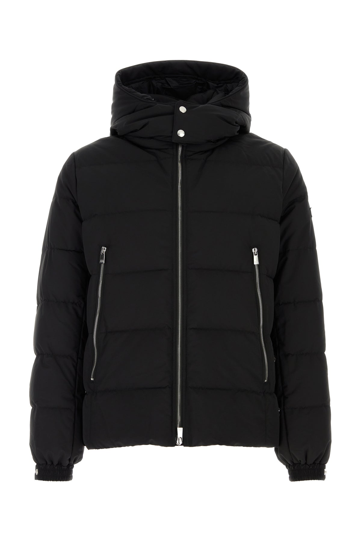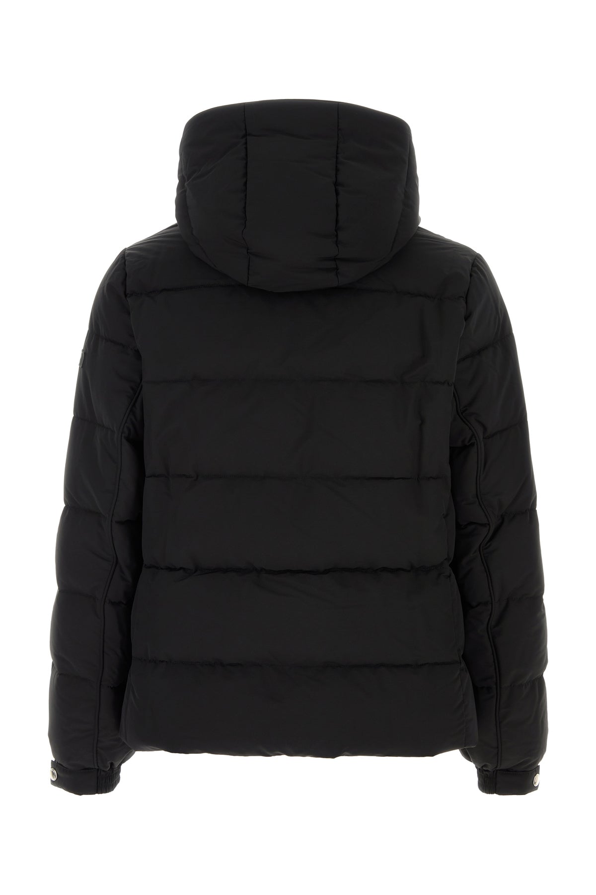 Down jacket realized in wool blend enriched by logoed label on the sleeve.