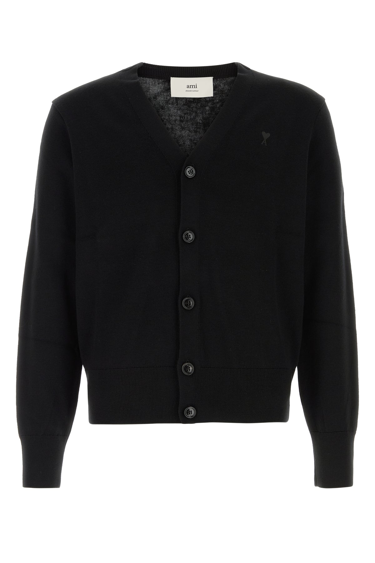 Cardigan realized in pure merino wool characterized by tonal Ami De Coeur embroidery on the chest.