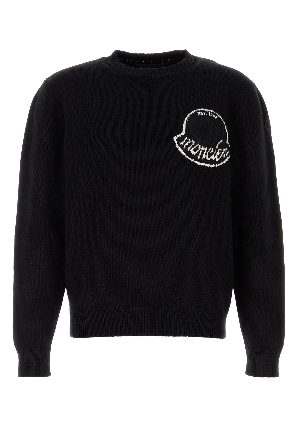 Sweater realized in pure virgin wool characterized by contrasting logoed embroidery on the chest enriched by tonal logoed patch on the sleeve.