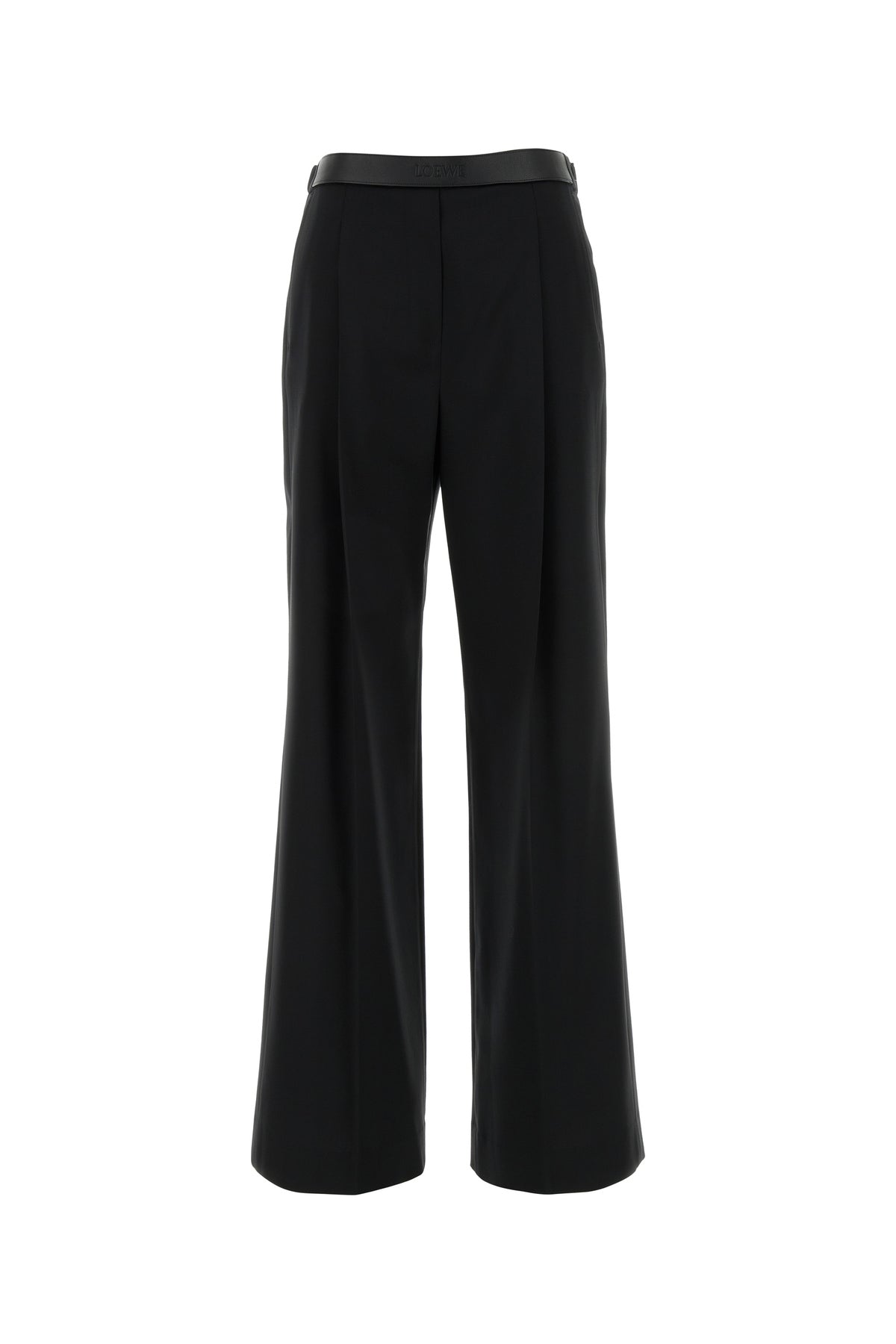 Wide-leg pant realized in pure wool enriched by tonal leather insert with LOEWE motif at the waist.