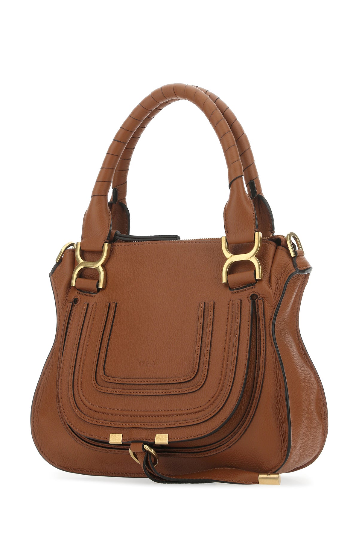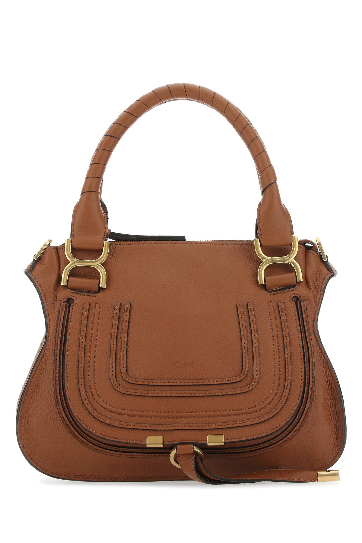 Handbag realized in pebble calf leather characterized by embossed logo on the flap enriched by tonal leather patches at the front.