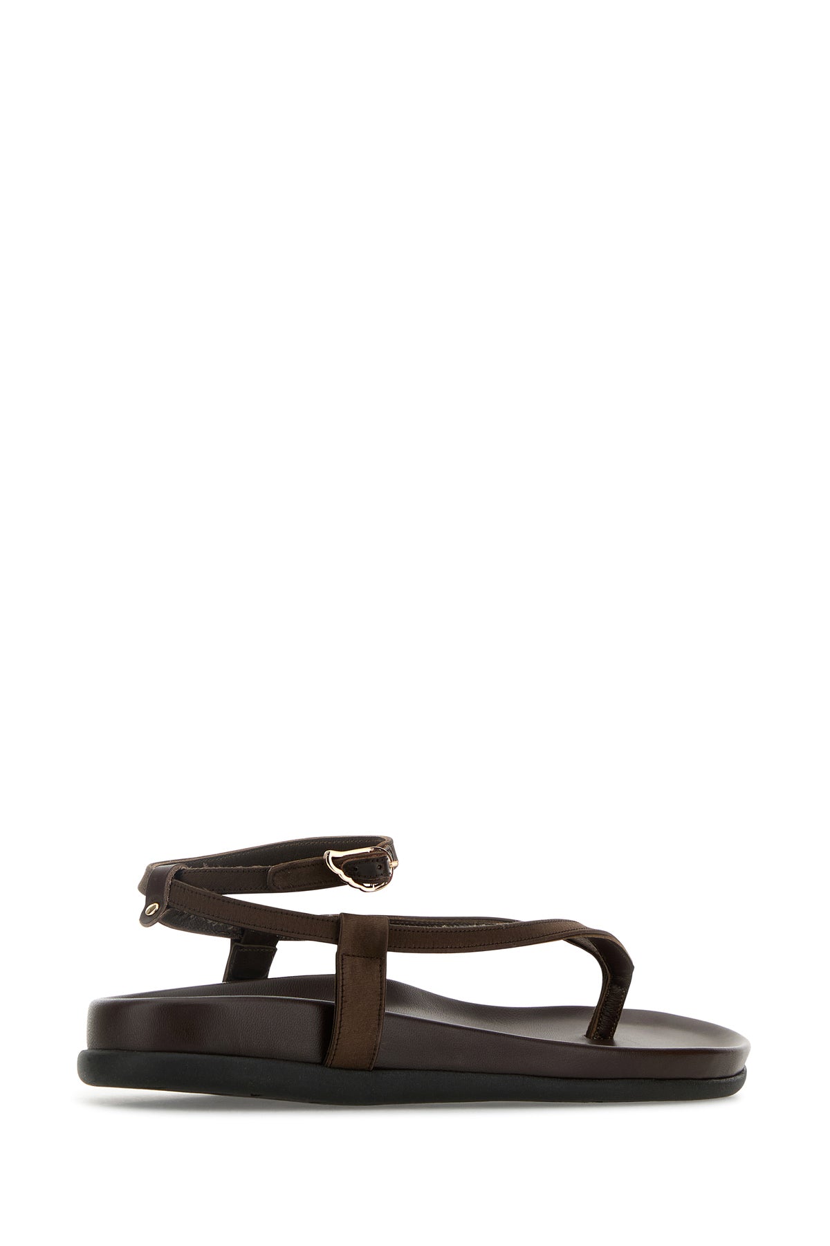Thong sandals realized in satin characterized by adjustable ankle strap closure.