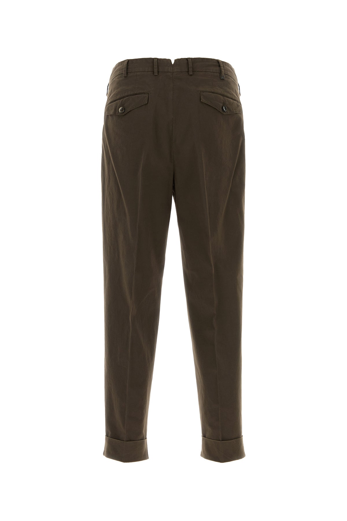 Pant realized in stretch cotton enriched by metal logoed detail at the back.