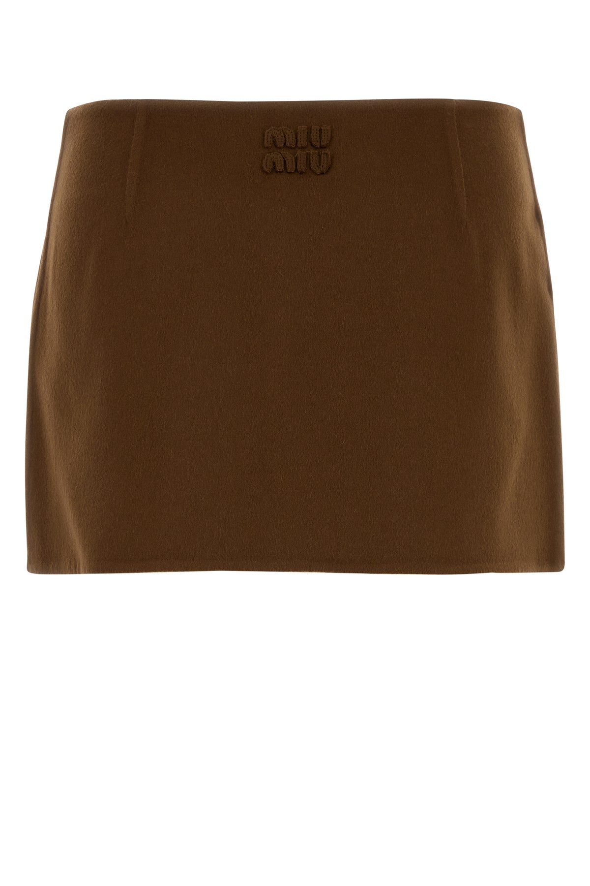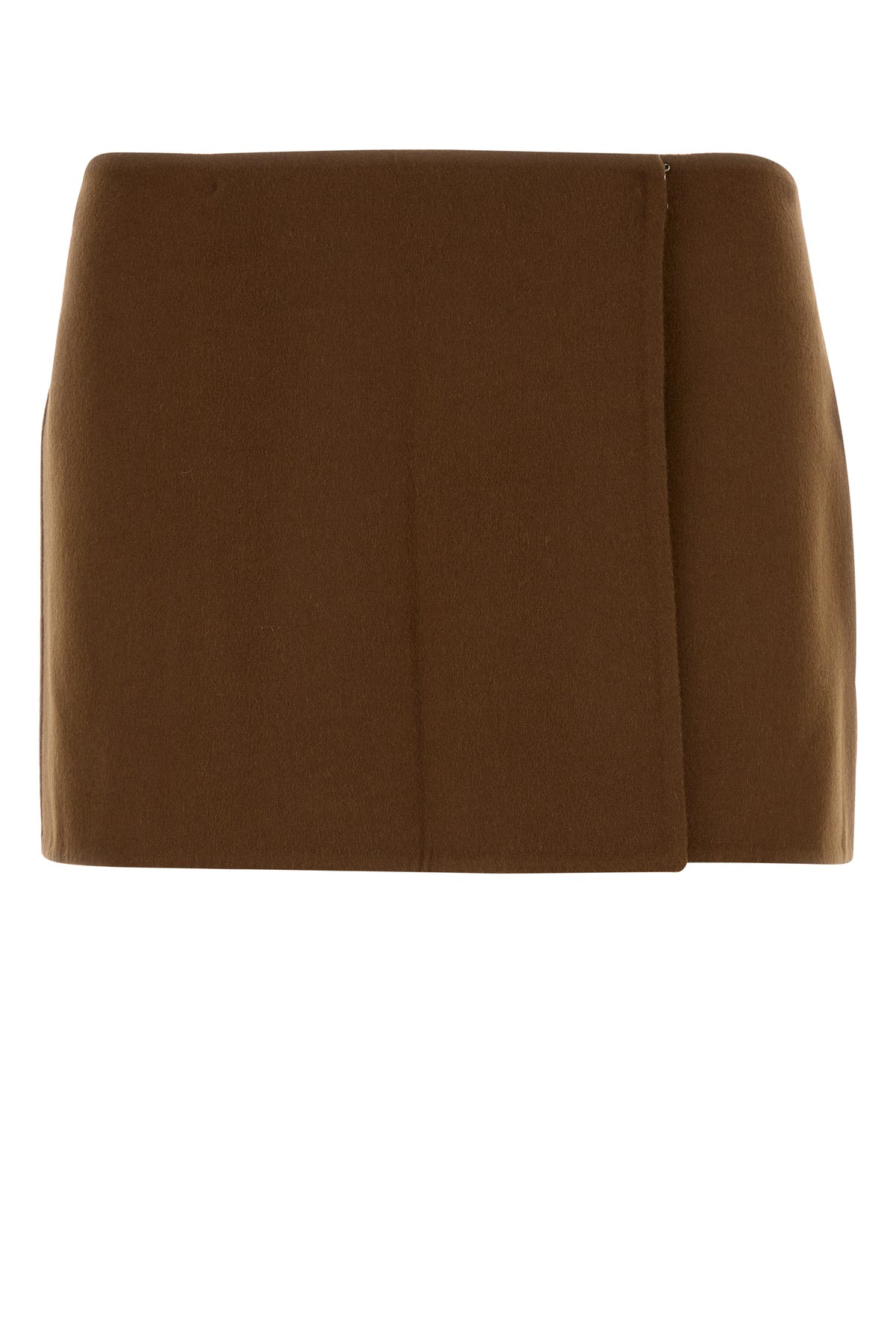 Mini skirt realized in wool blend enriched by tonal logoed patch at the back.