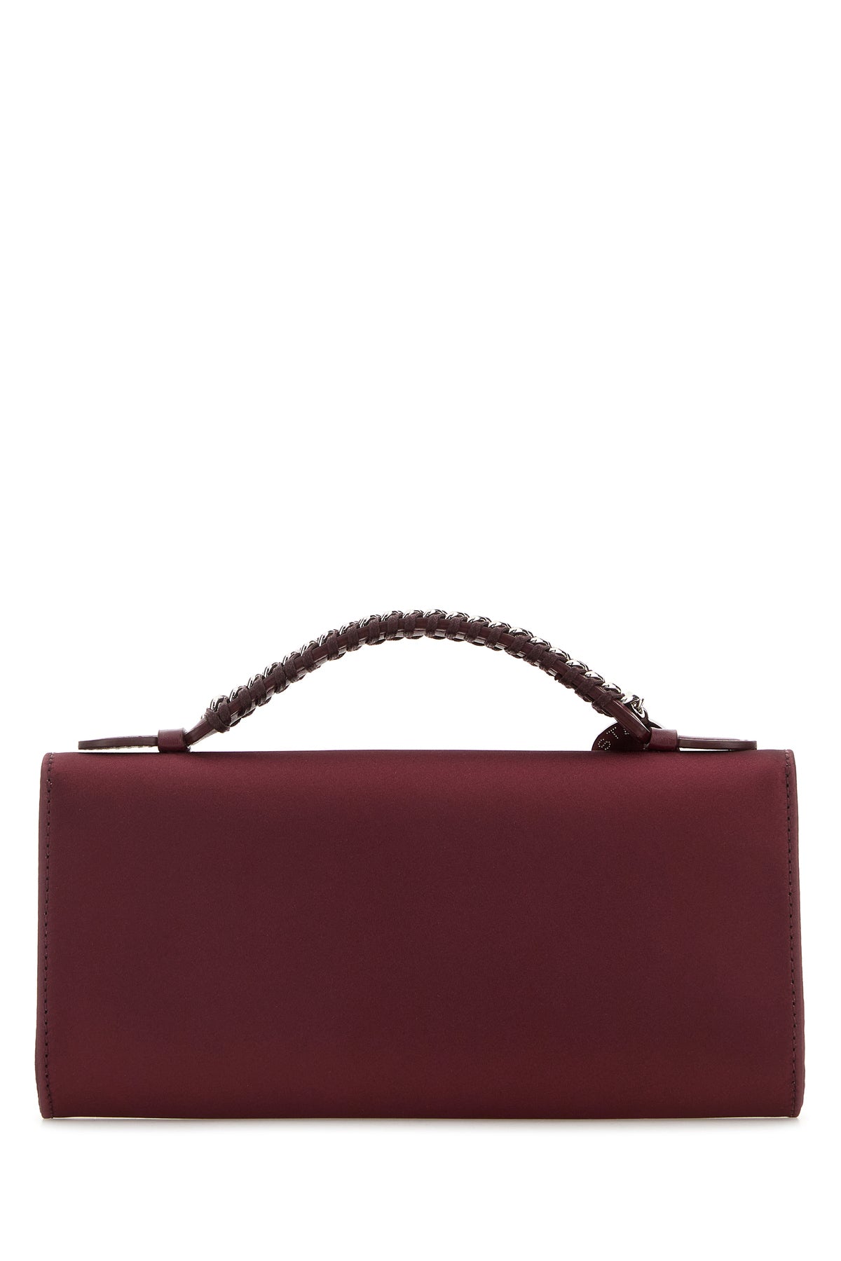 Handbag realized in satin enriched by logoed metal detail at the top.