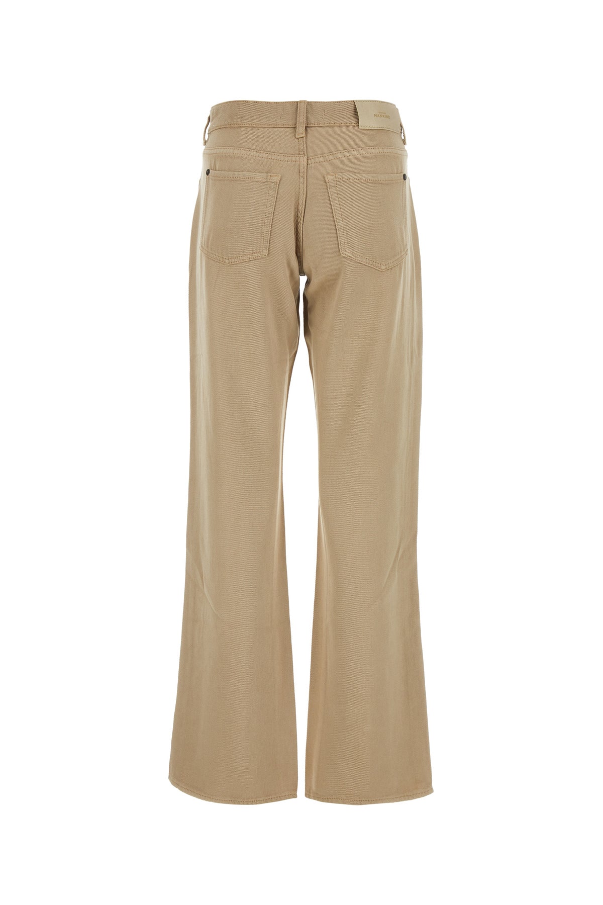 Pant realized in tencel enriched by tonal leather logoed label at the back.