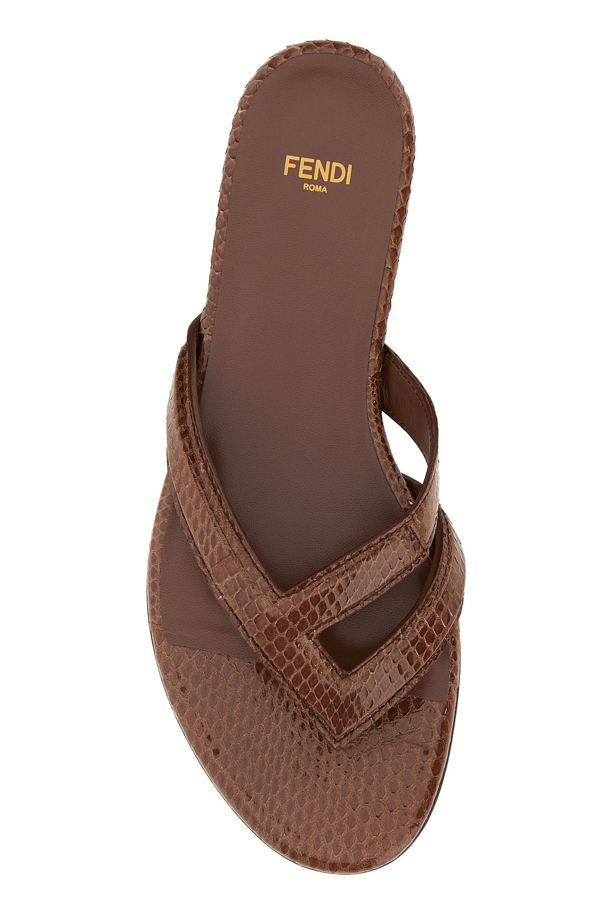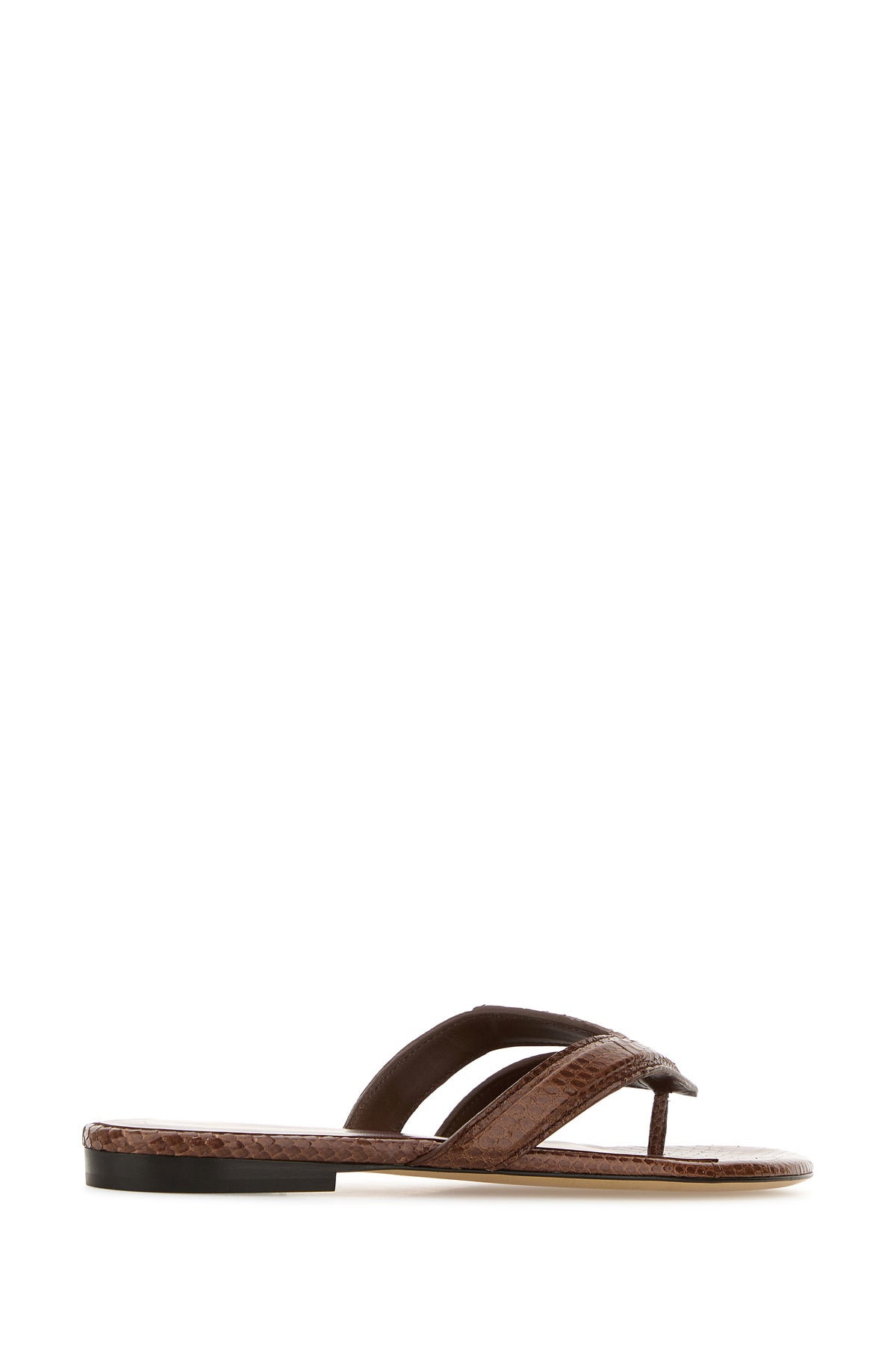 Thong slippers realized in crocodile embossed leather.