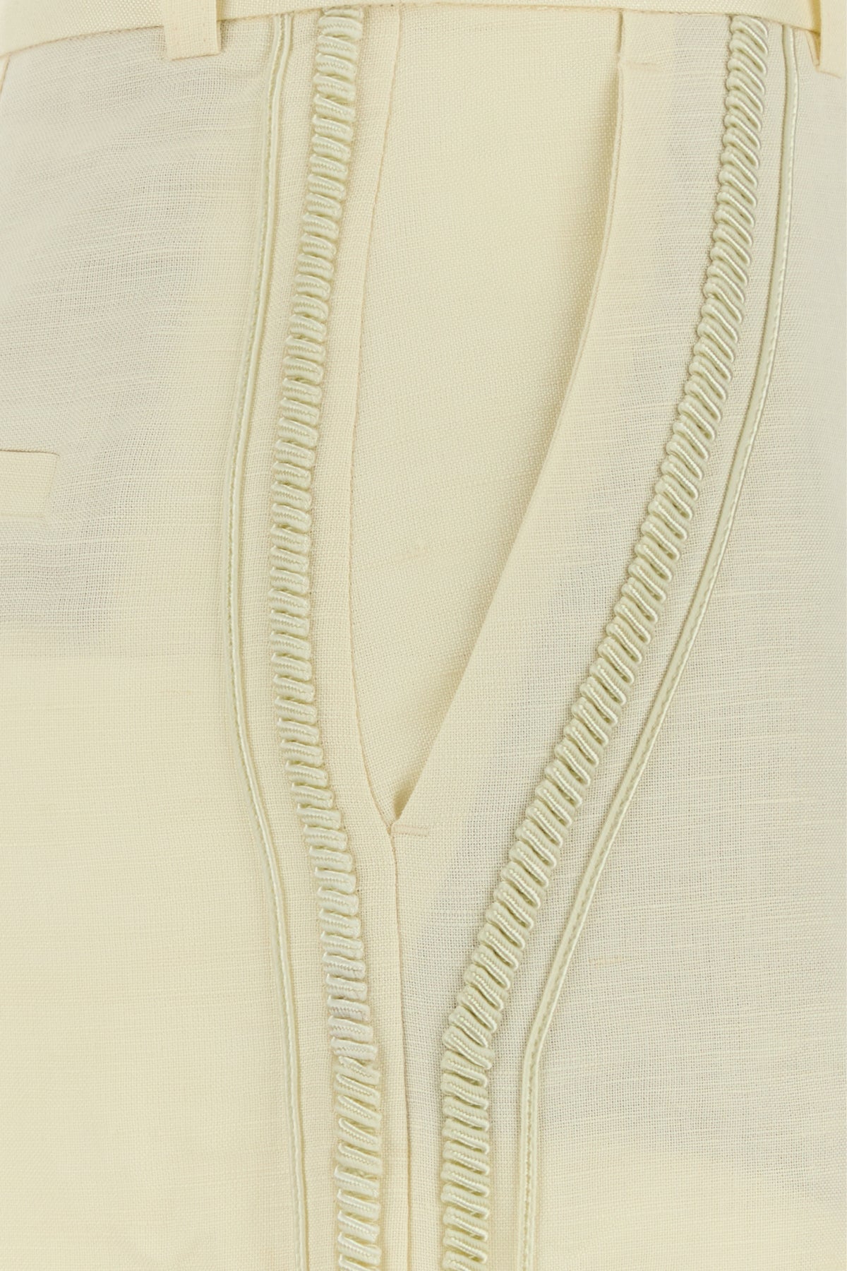 Wide-leg pant realized in linen blend characterized by peculiar embroideries on the sides.