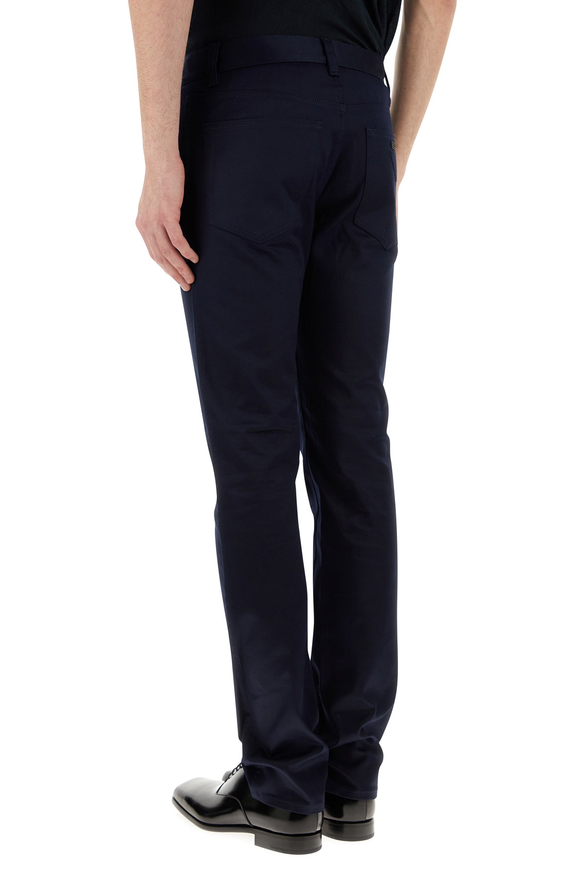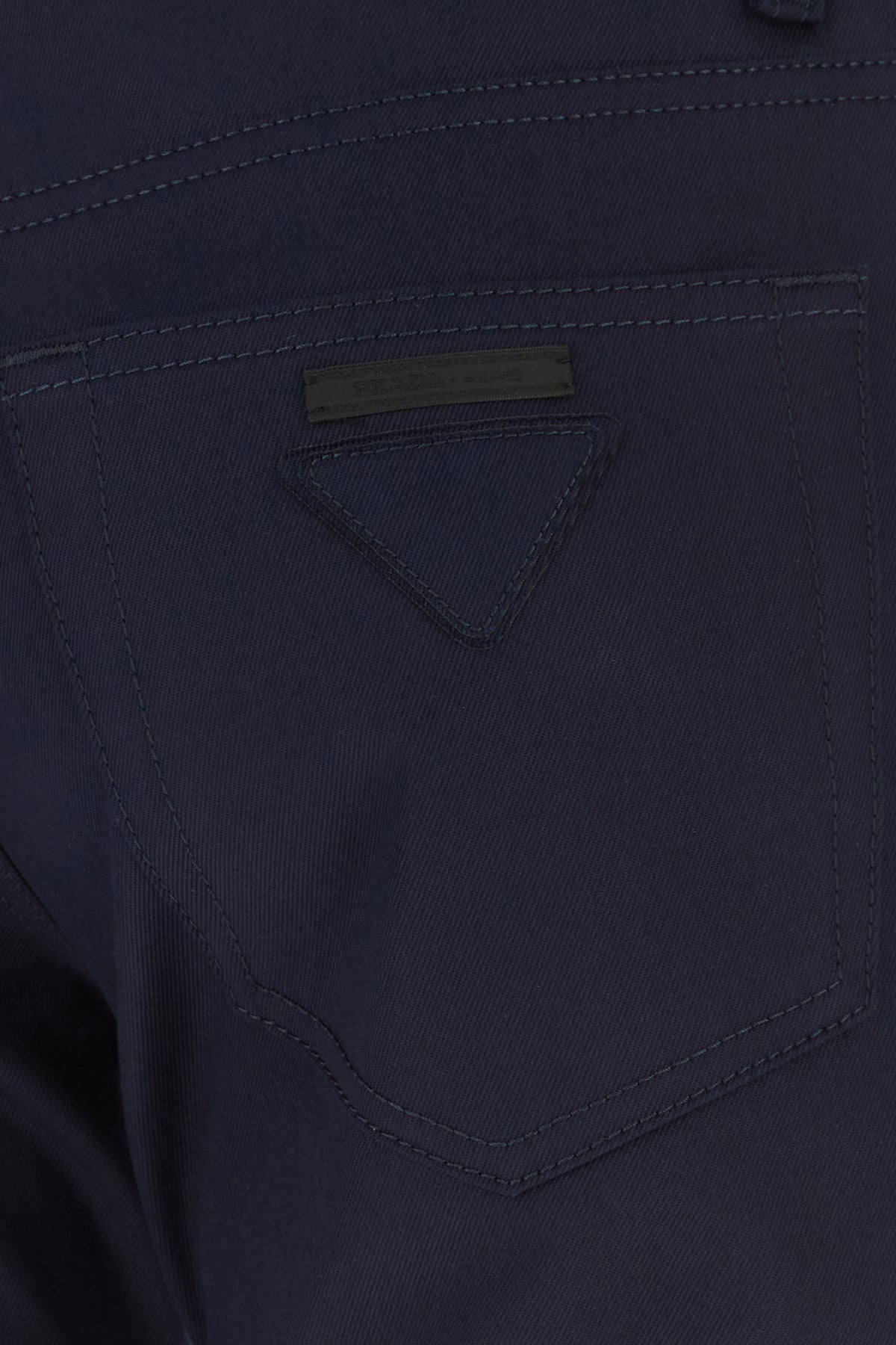 Chino pant realized in stretch cotton drill enriched by iconic tonal fabric triangle and contrasting logoed label at the back.