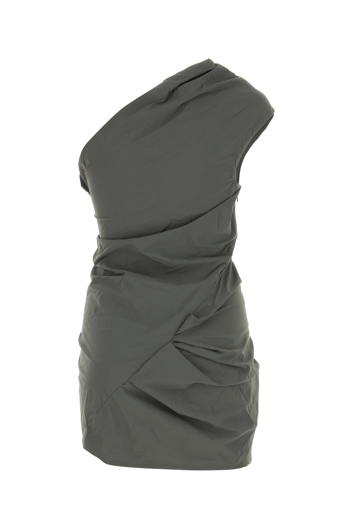Dark grey nylon stretch Mini Pillar one-shoulder dress