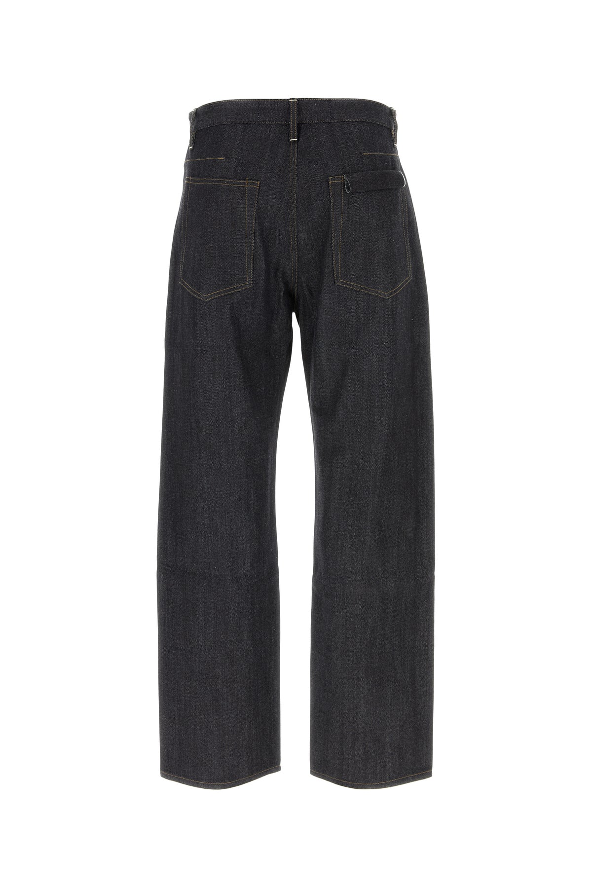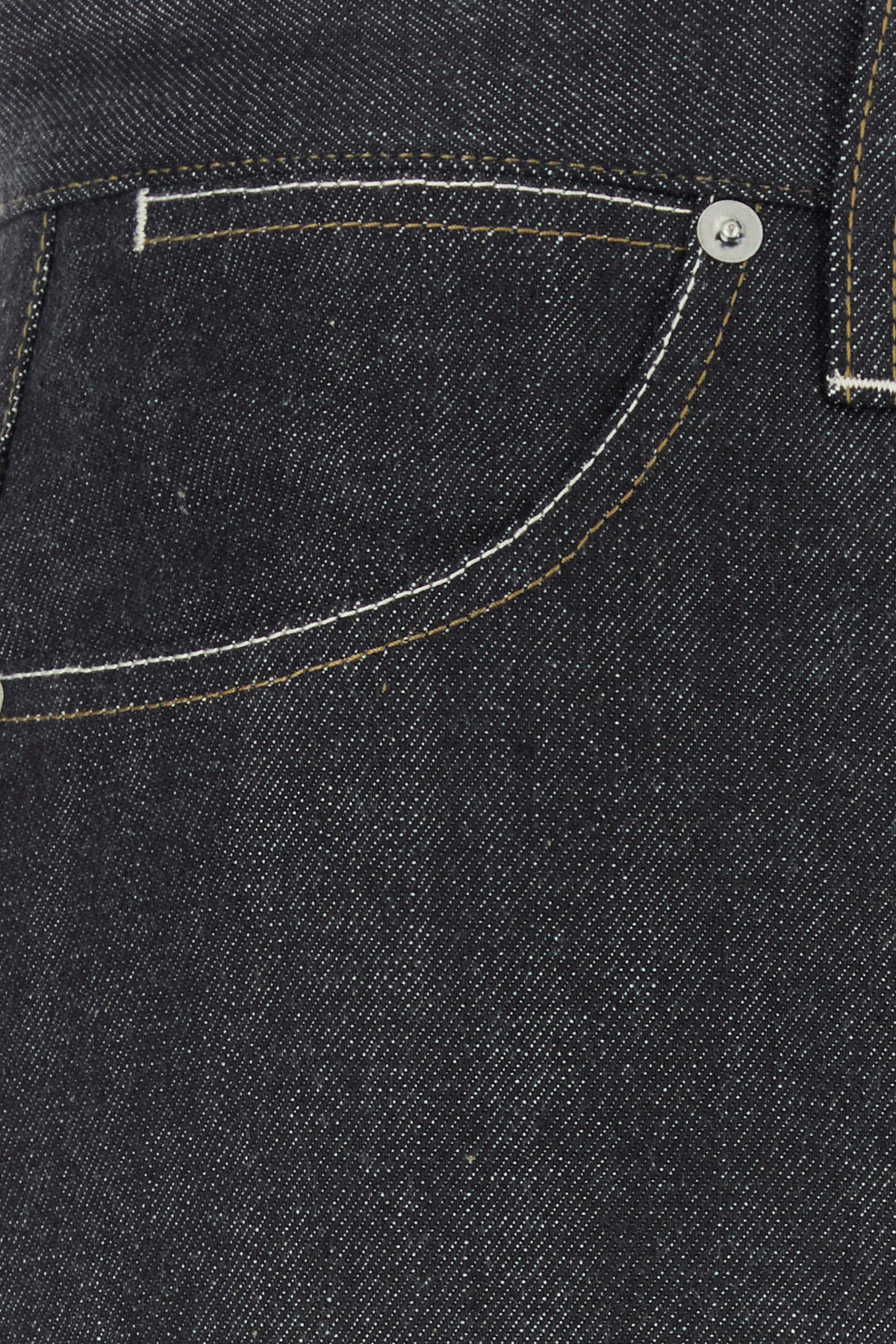 Jeans realized in pure cotton denim enriched by contrasting logoed denim insert at the back.