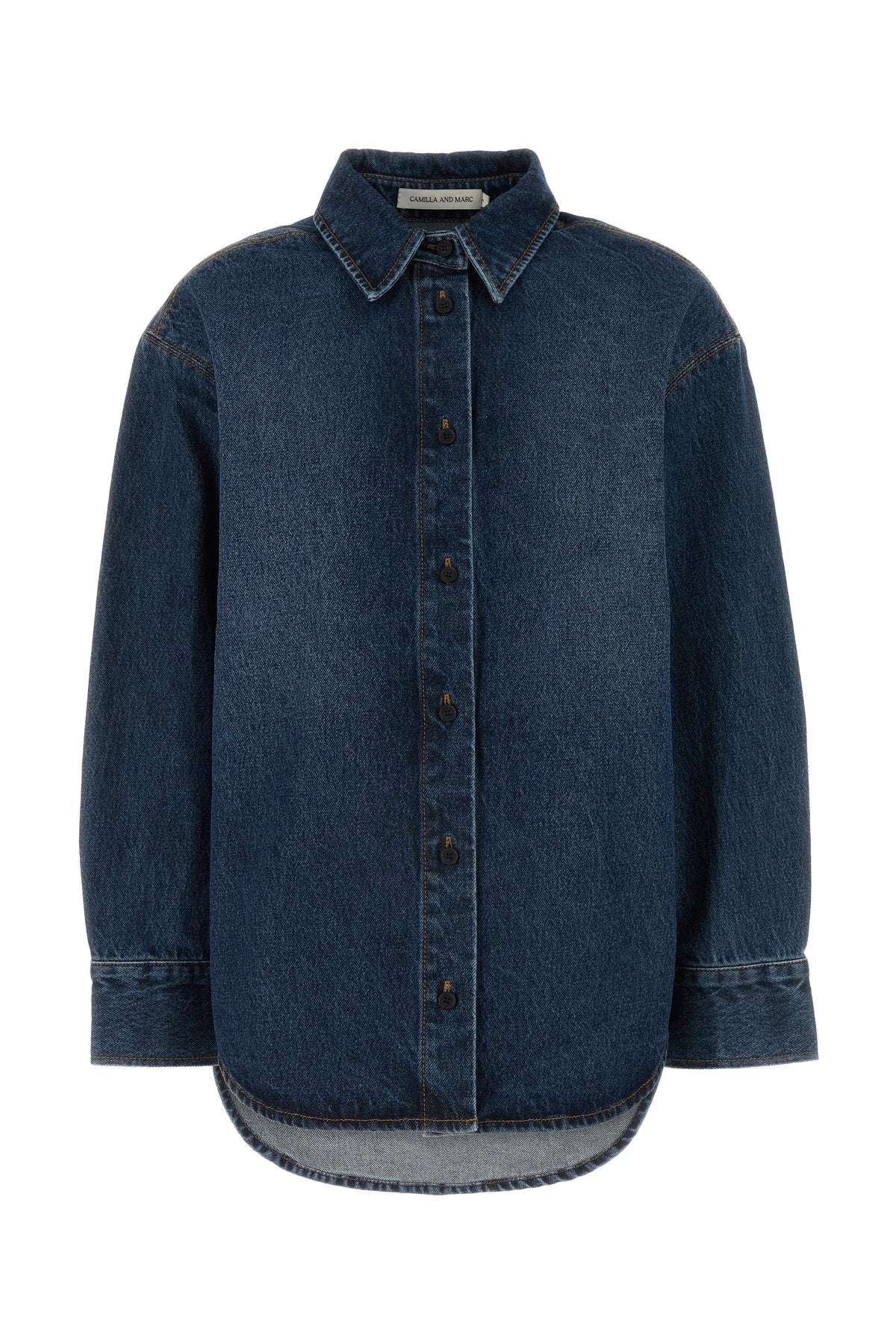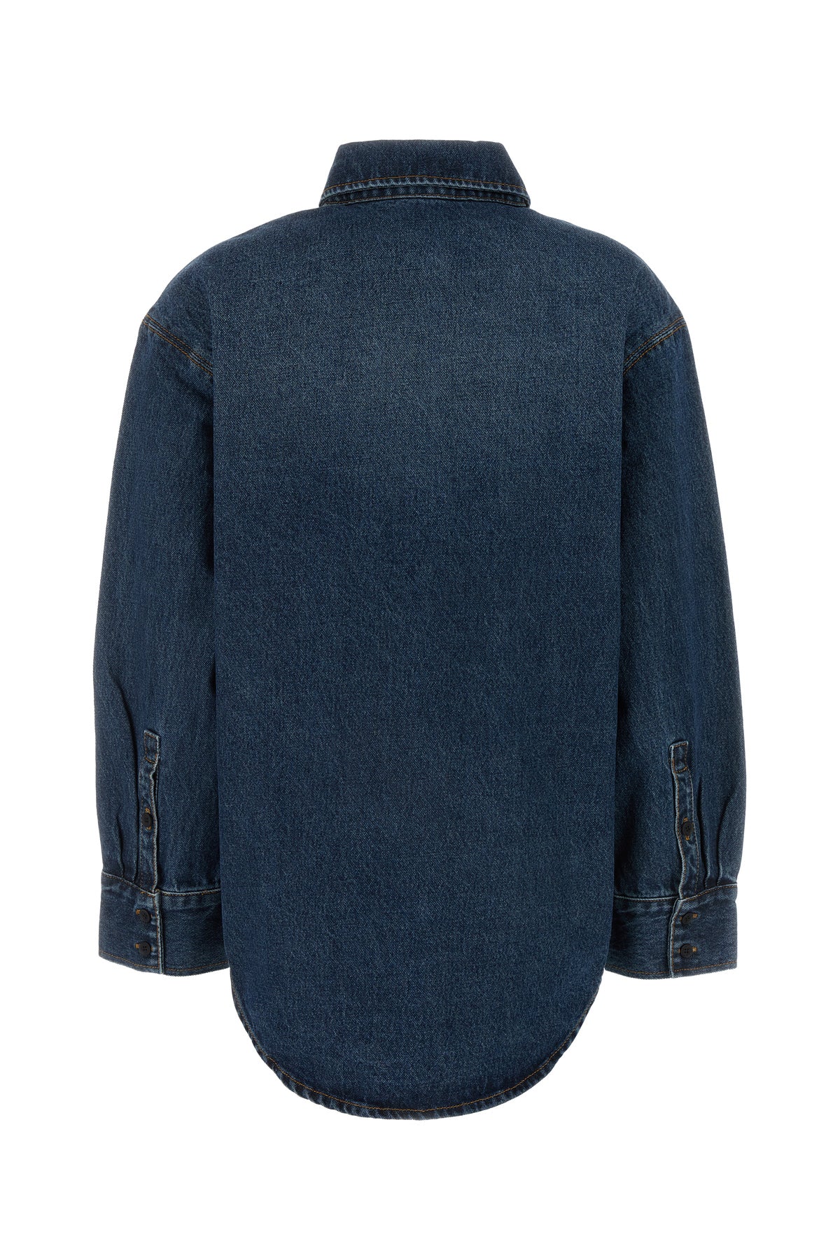 Oversize shirt realized in stonewashed pure cotton denim characterized by contrasting embroidered logo at the front.