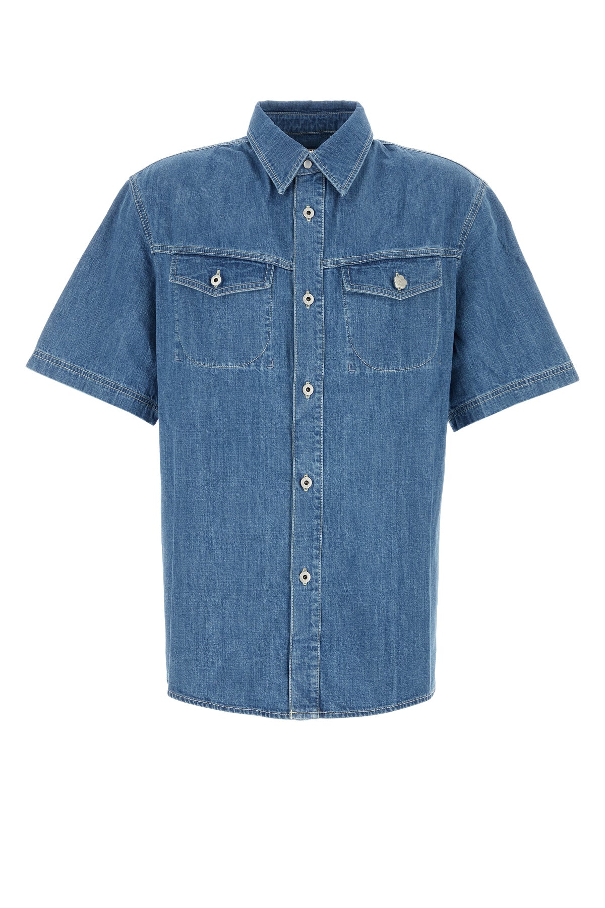 Short-sleeves shirt realized in pure cotton denim enriched by contrasting logoed label at the back.