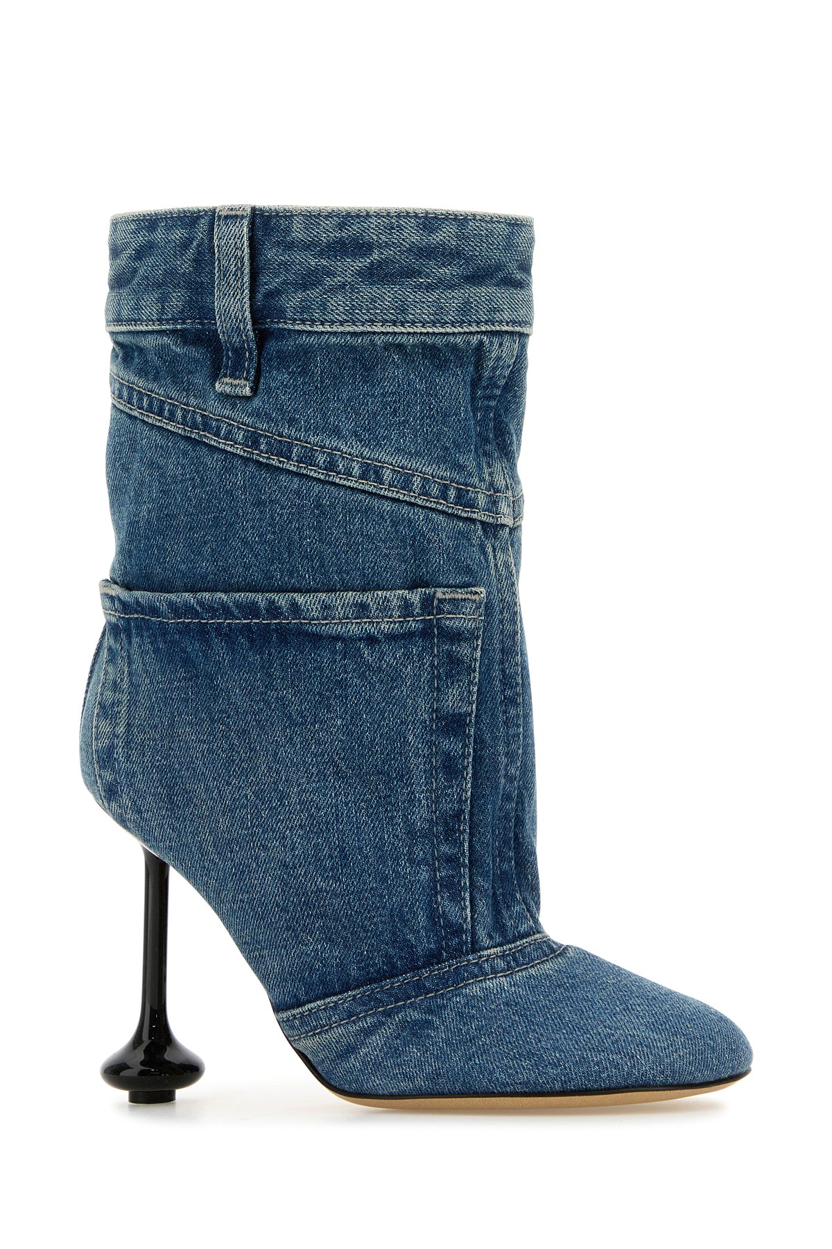 Ankle boots realized in stonewashed denim enriched by decorative pockets and decorative loops at the top.