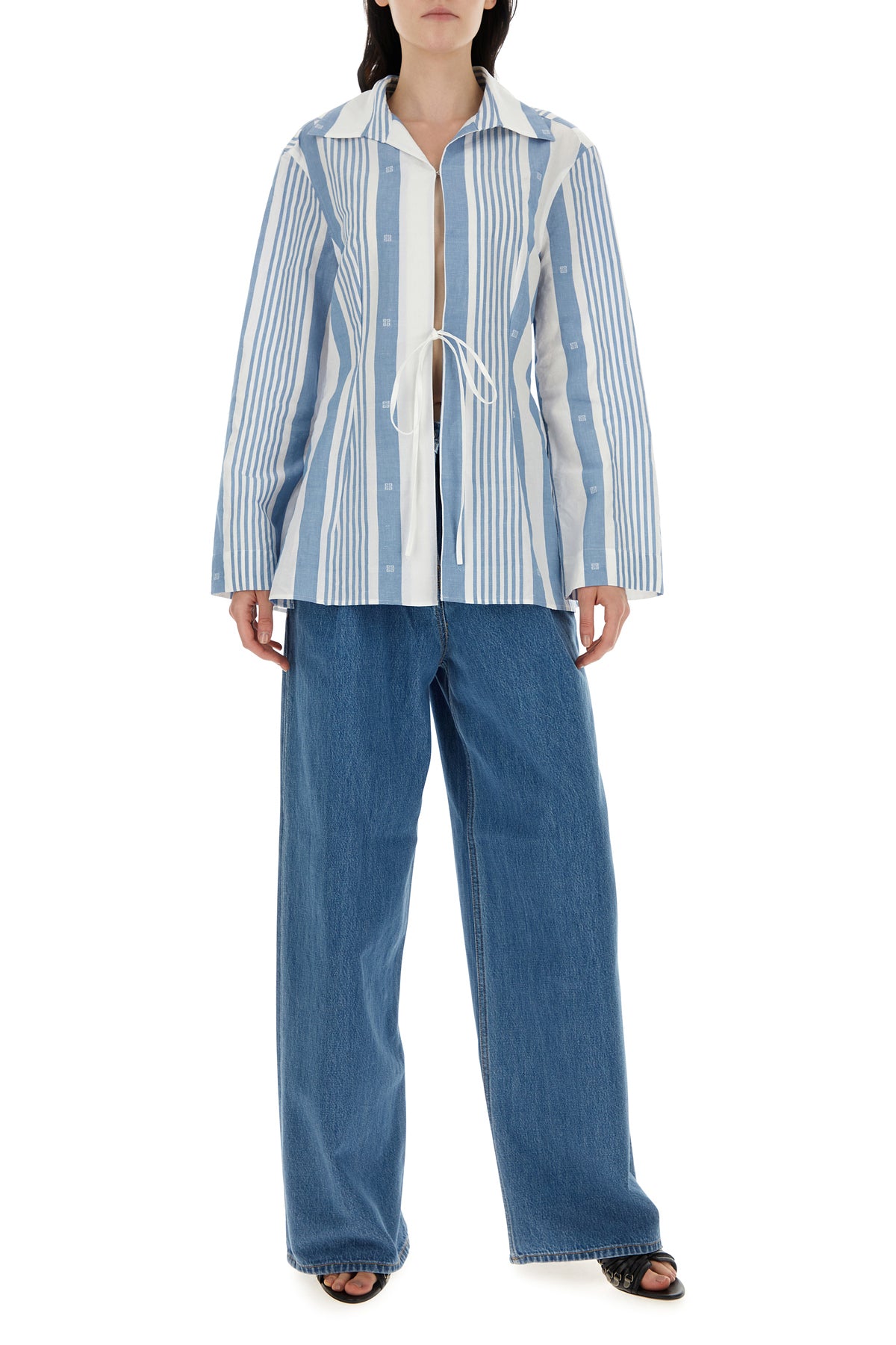 Wide-leg jeans realized in pure cotton denim enriched by 4G metal details at the back.