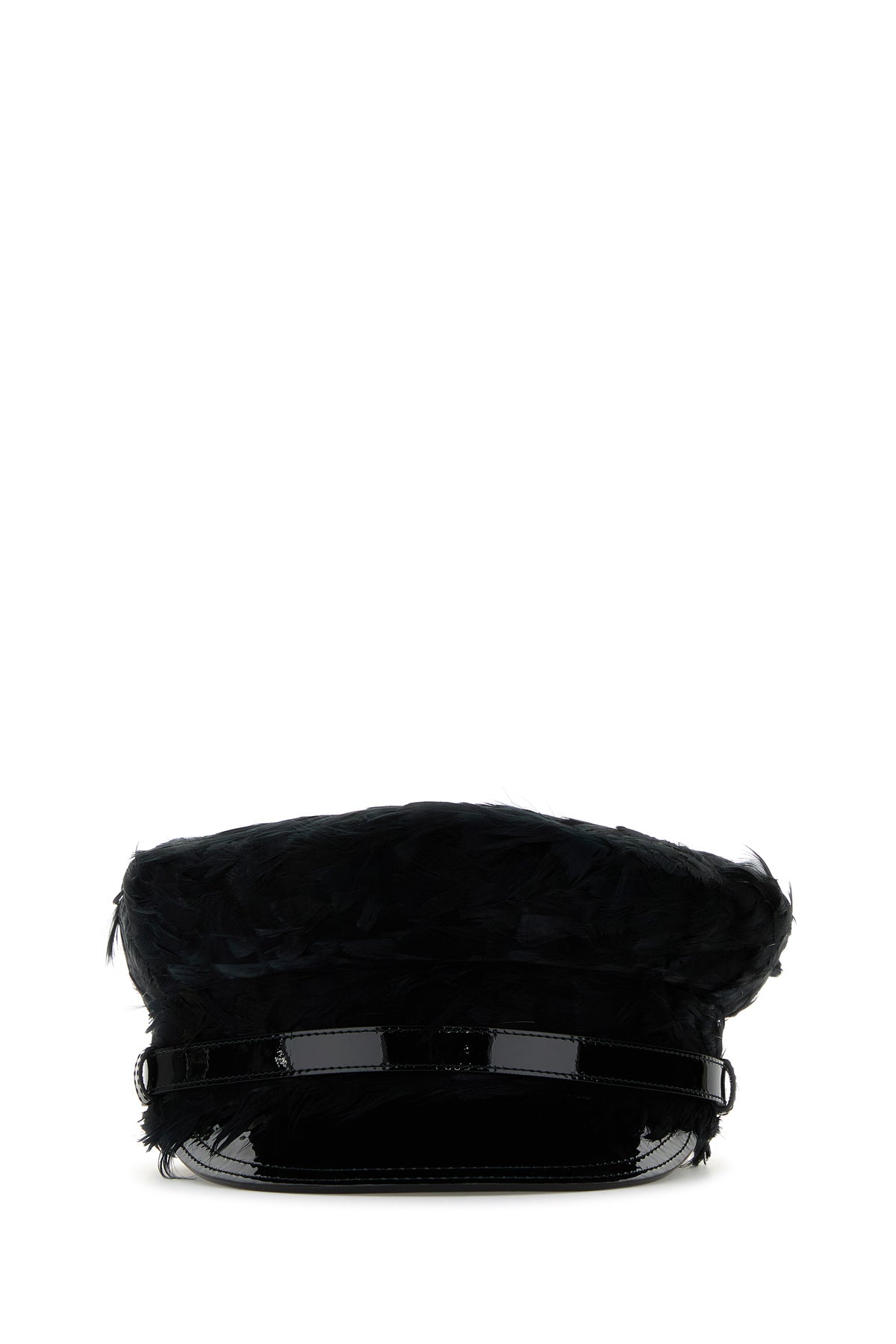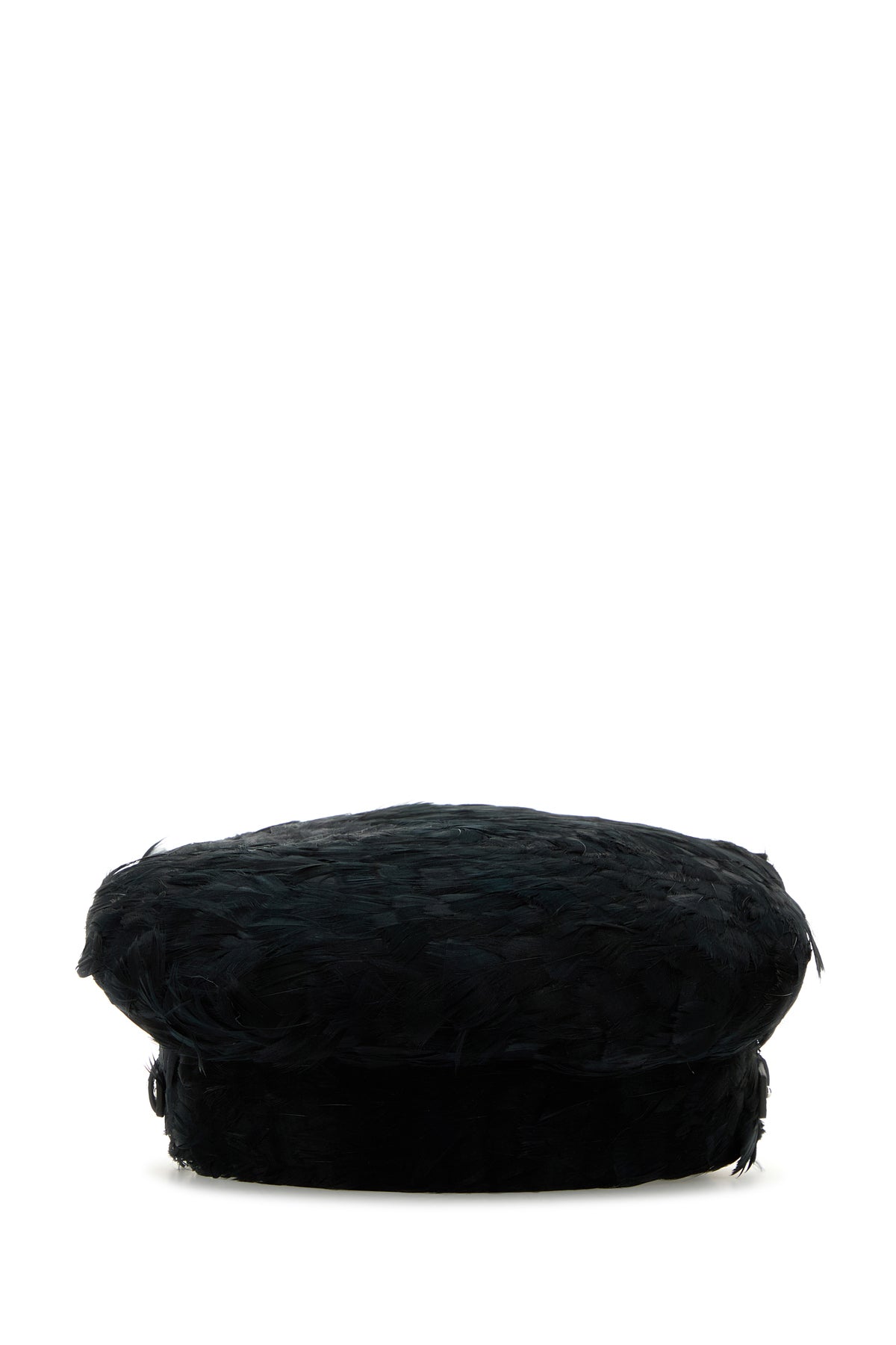 Baker boy hat realized in viscose blend entire covered by feathers.
