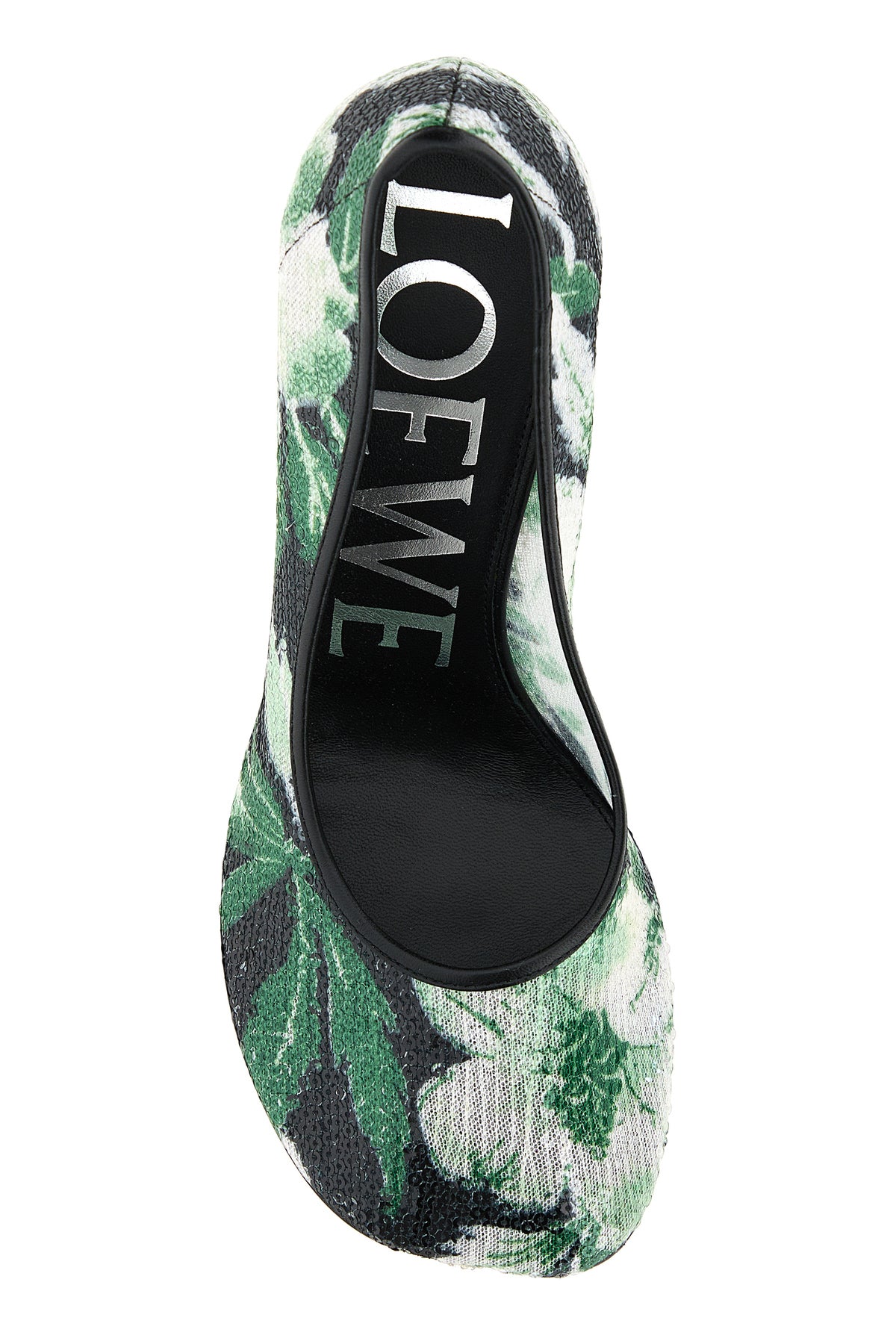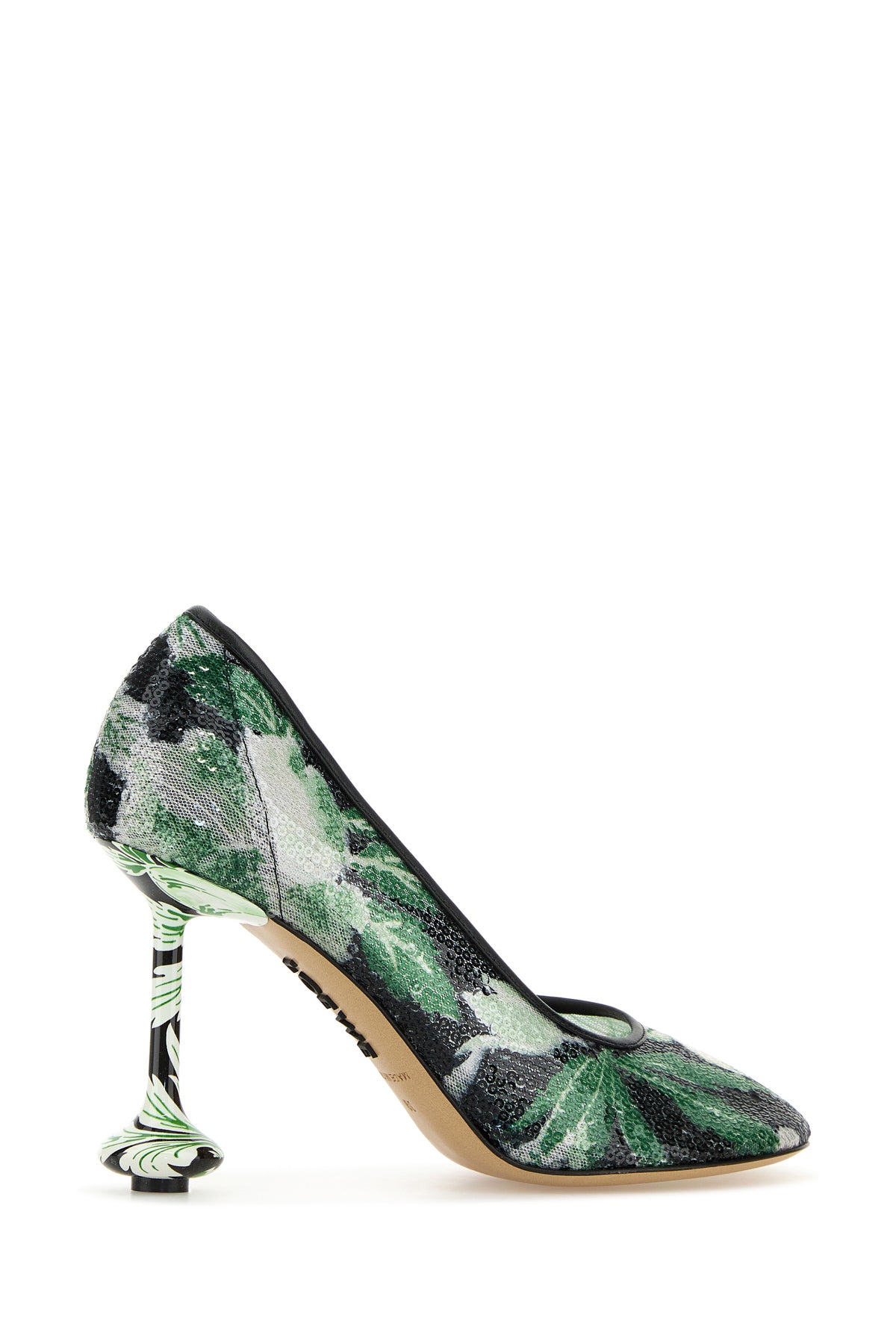Pumps realized in mesh entirely covered by sequins.
