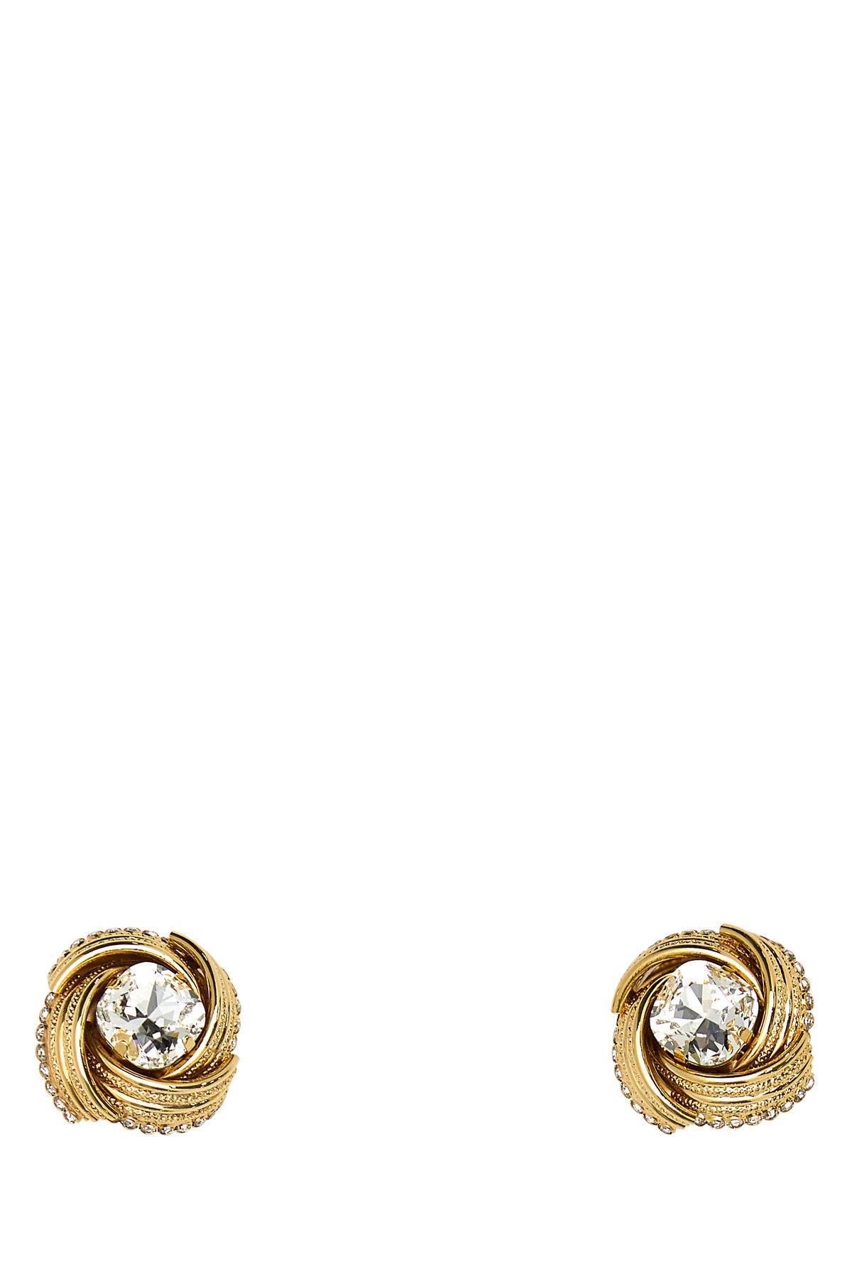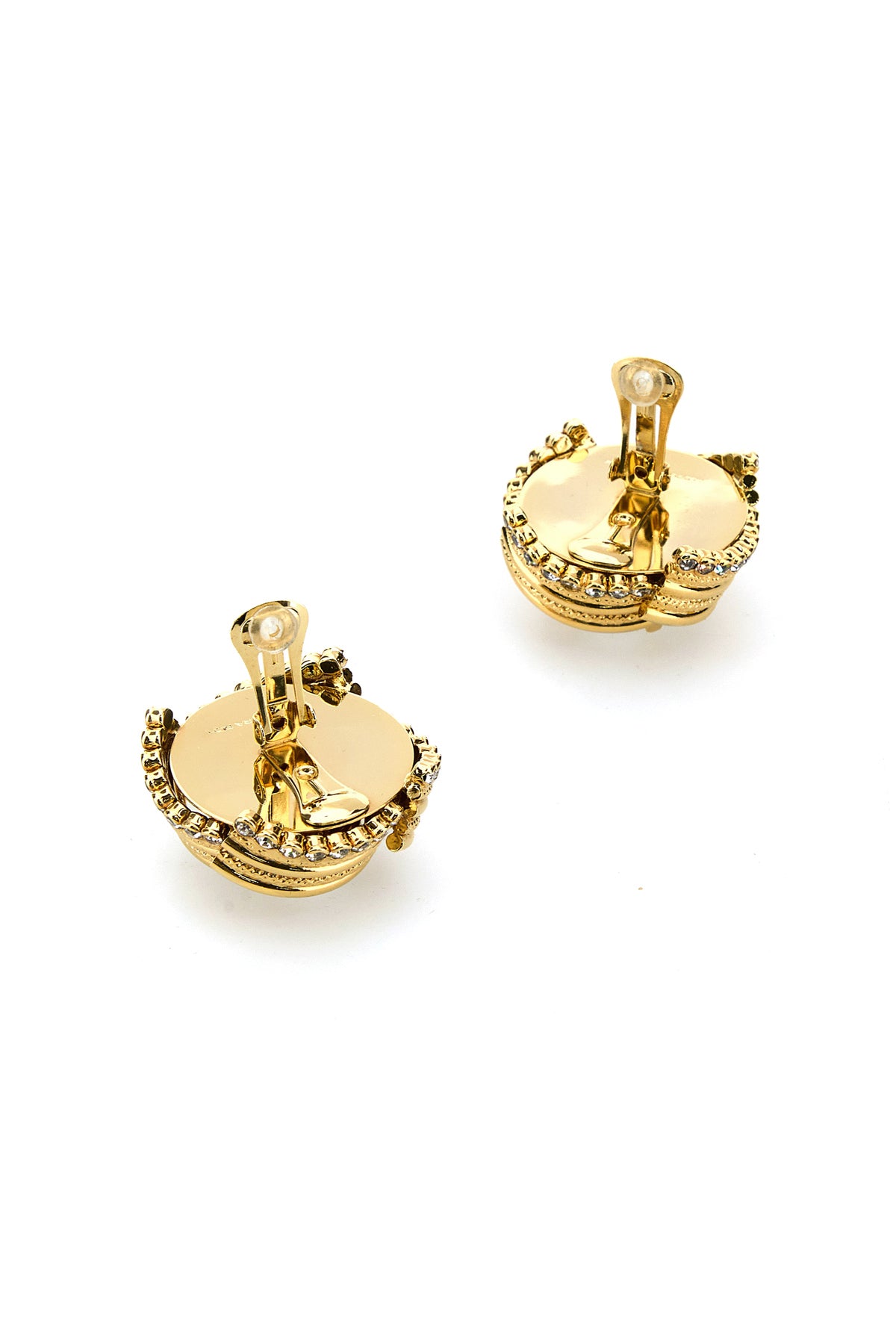 Earrings realized in gold-tone plated metal enriched by rhinestones.