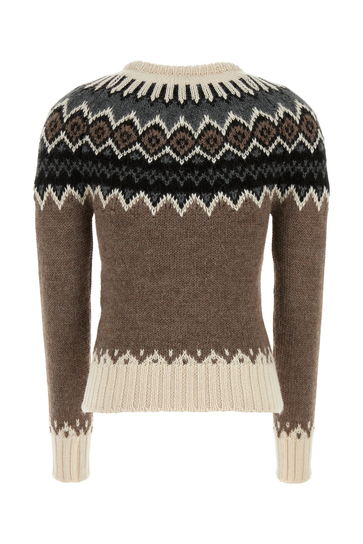 Sweater realized in alpaca blend characterized by peculiar embroidery at the top, on the cuffs and on the hemline.