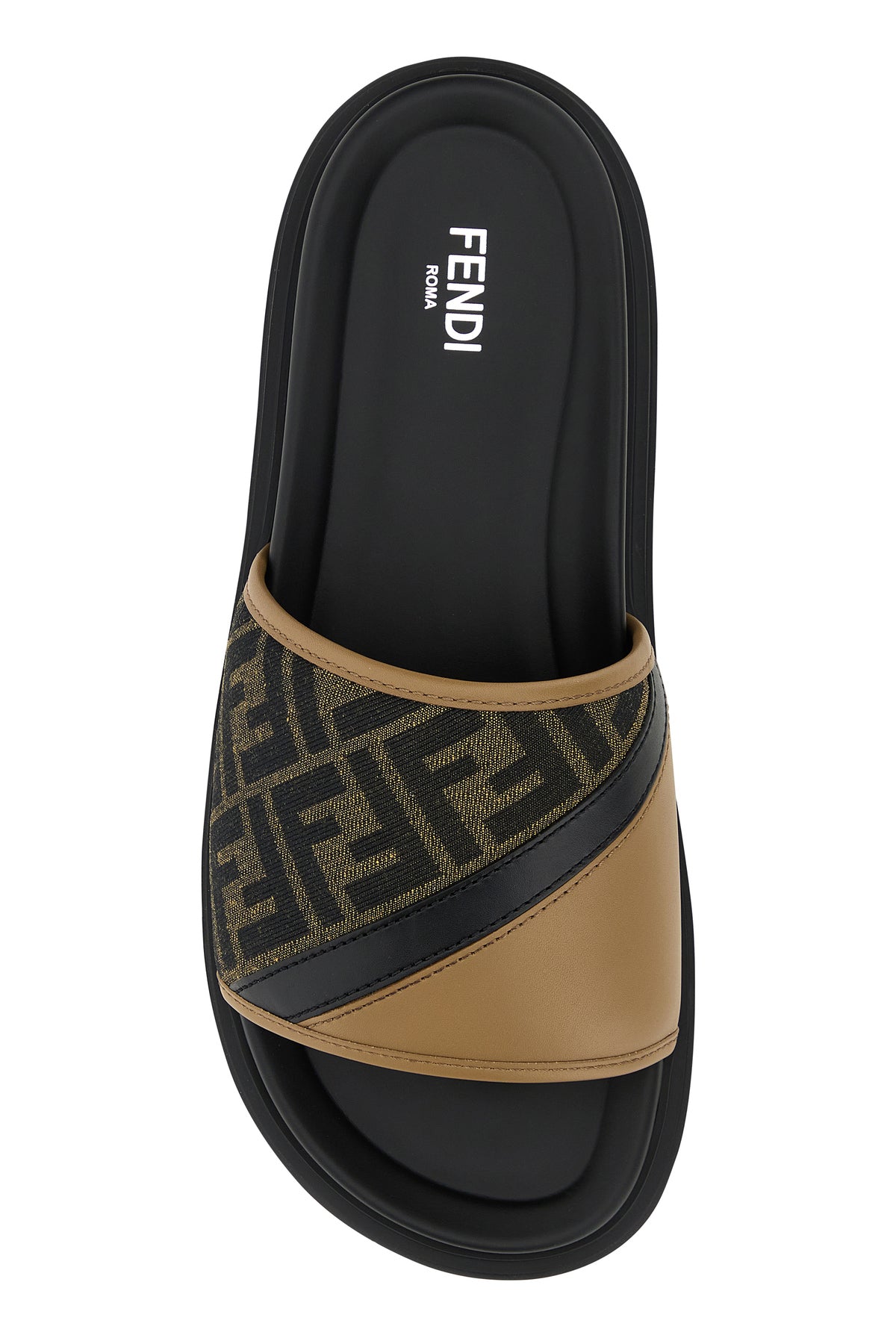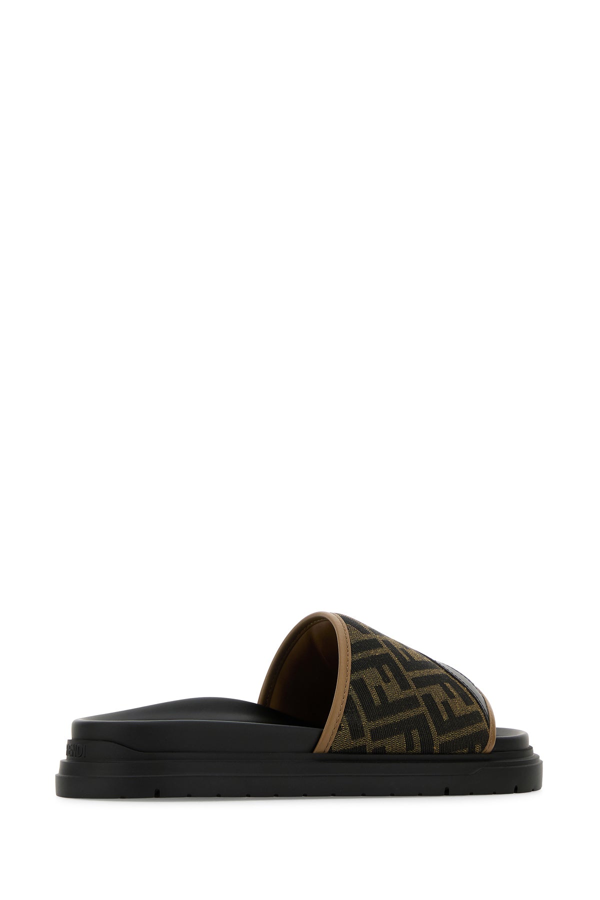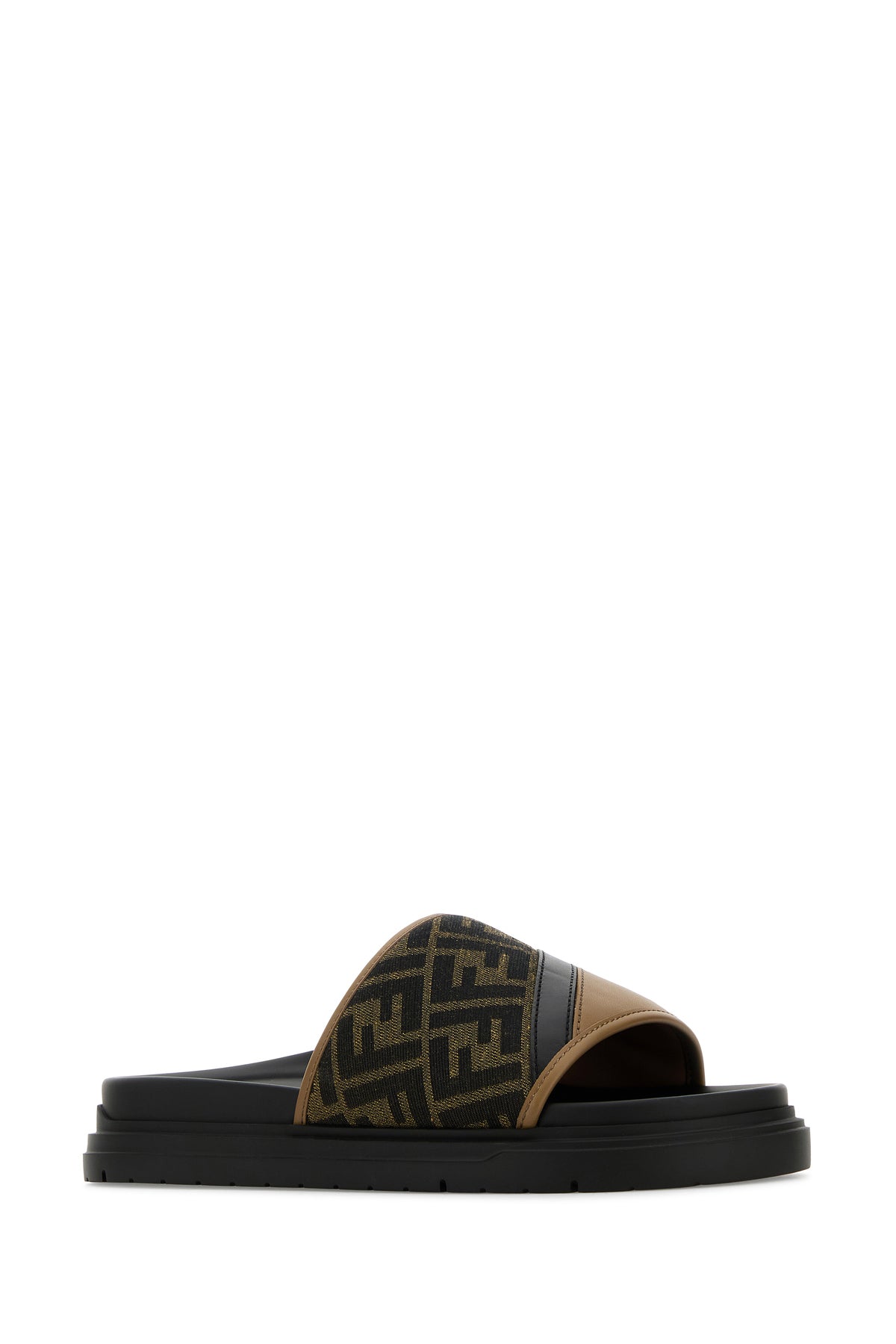 Slippers realized in canvas and smooth calf leather characterized by FF motif embroidery on the entire surface.