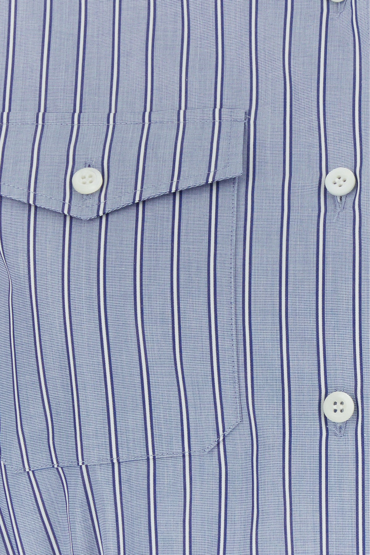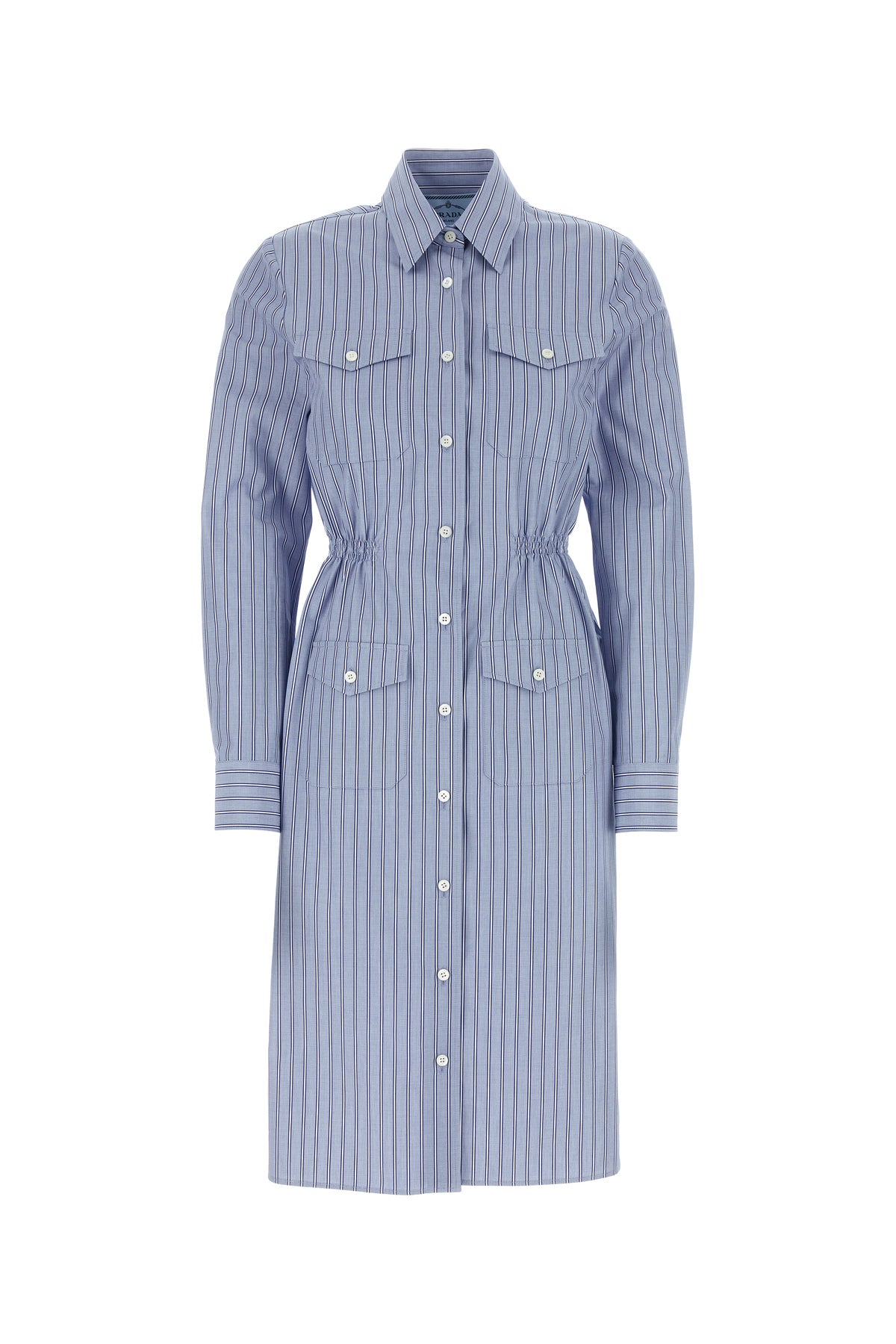 Shirt dress realized in pure cotton chambray characterized by striped embroidery on the entire surface.