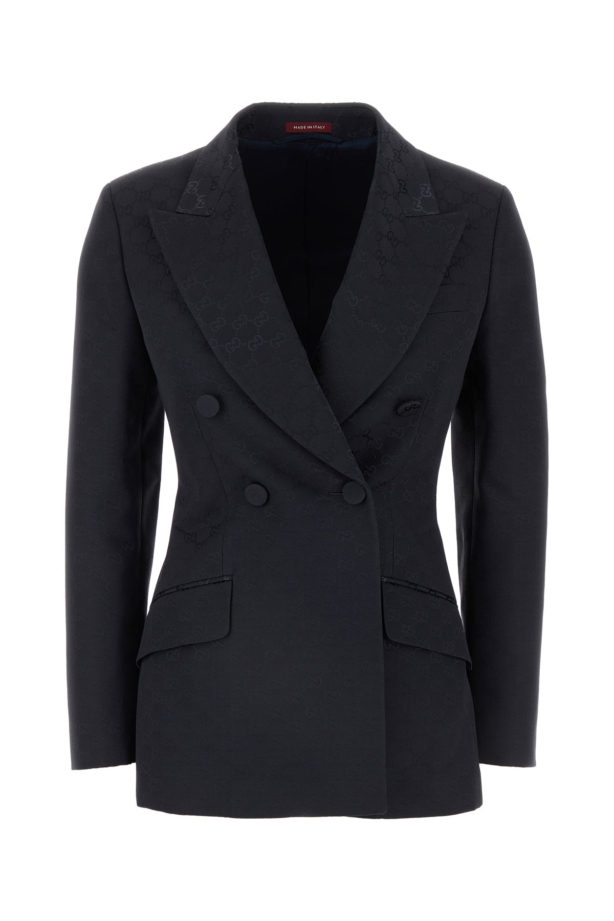 Blazer realized in cotton blend characterized by GG embroidery on the entire surface.