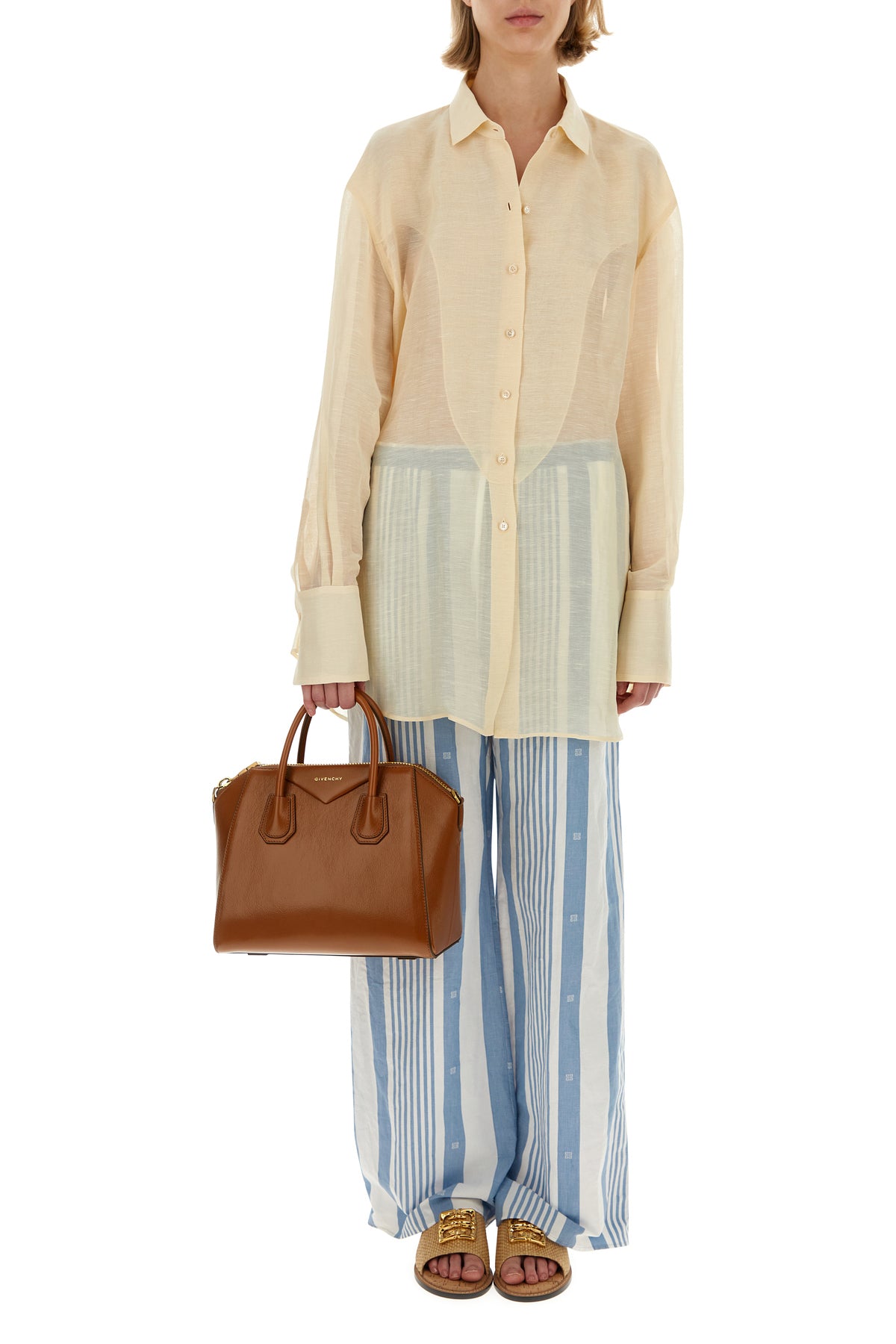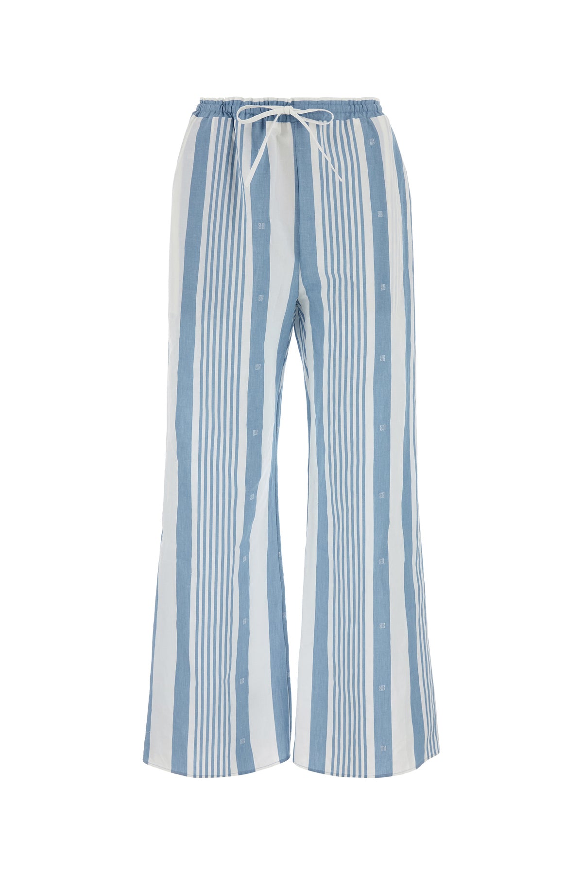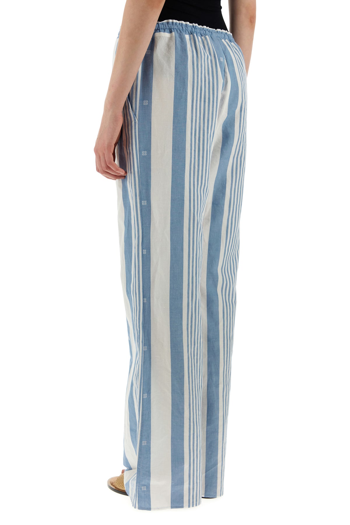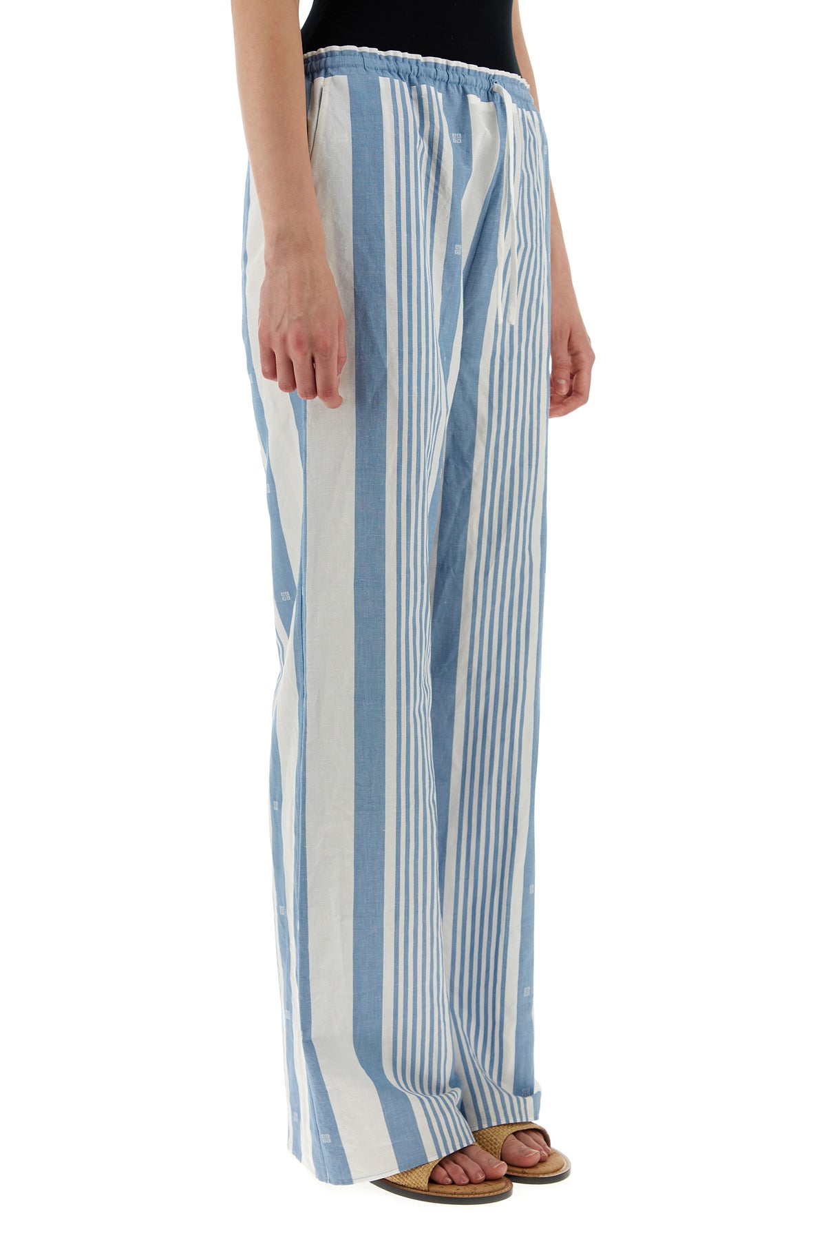 Wide-leg pant realized in cotton and silk characterized by logoed striped embroidery on the entire surface.