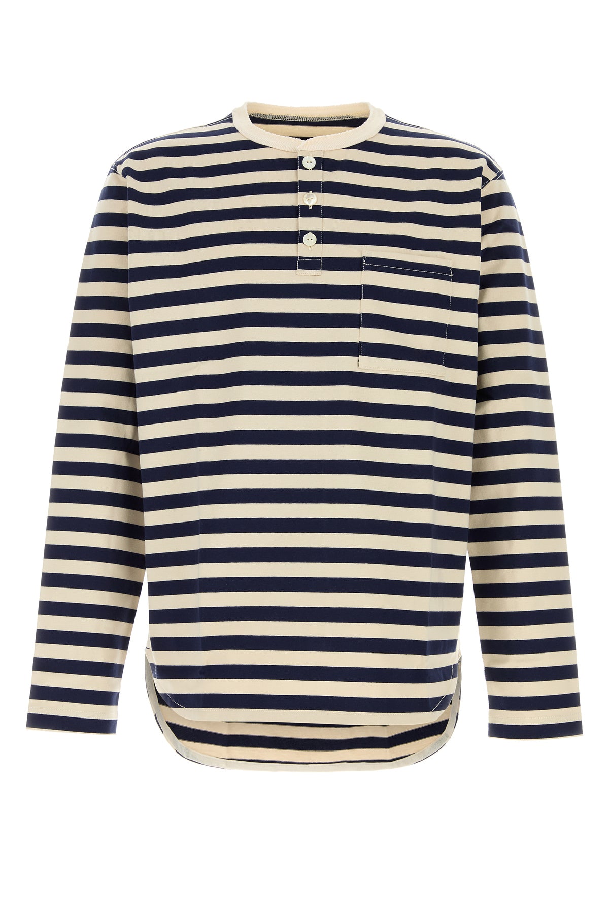 Oversize long-sleeve t-shirt realized in pure cotton characterized by striped embroidery on the entire surface.