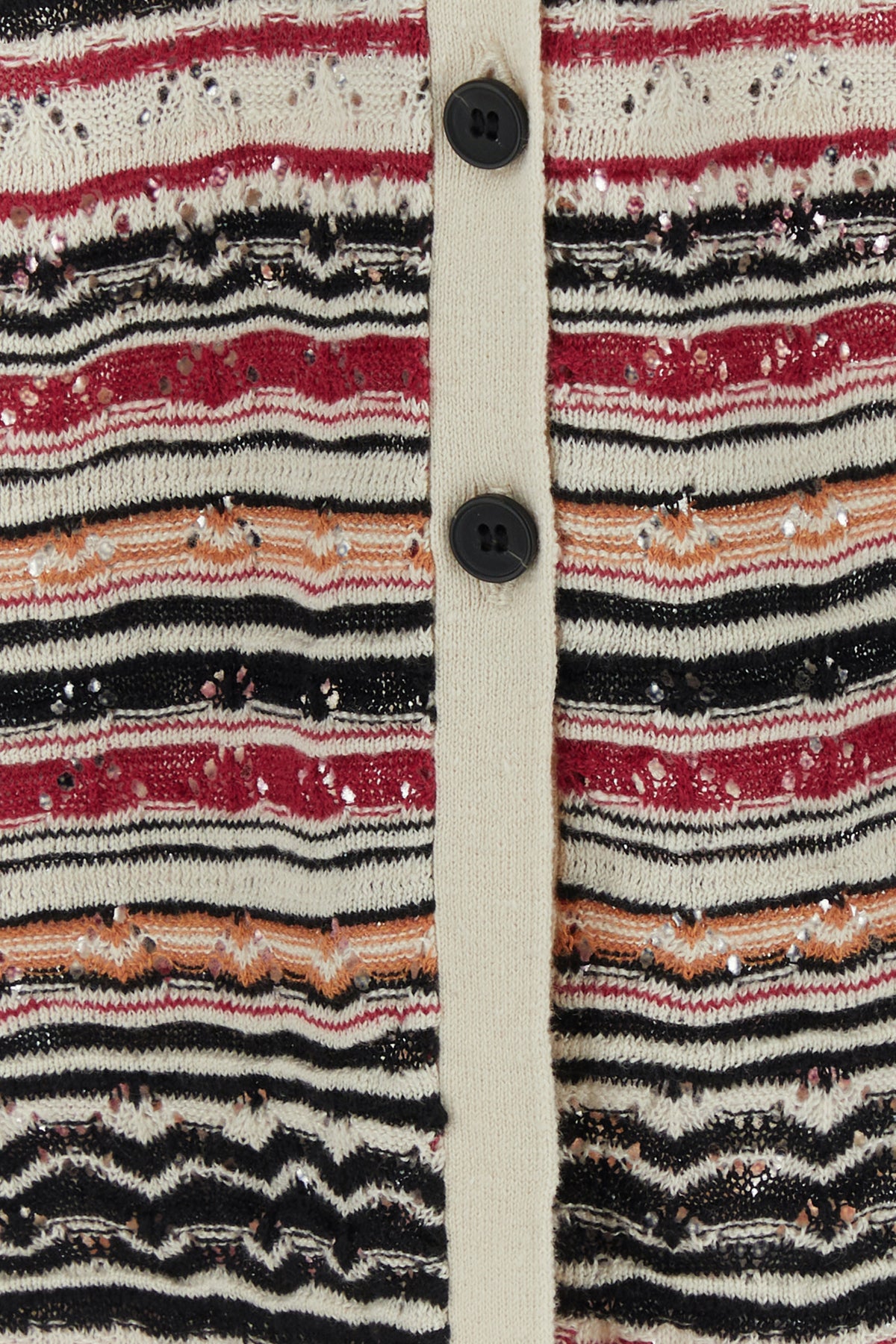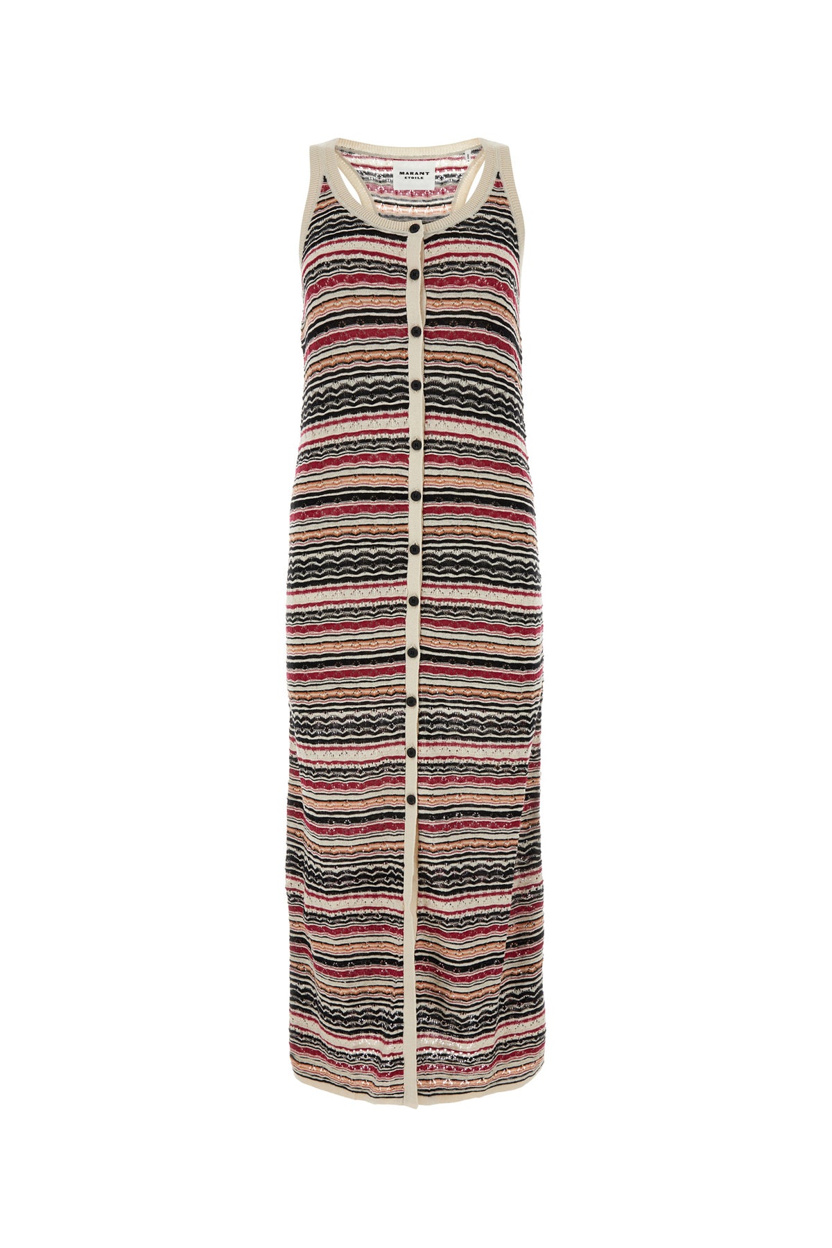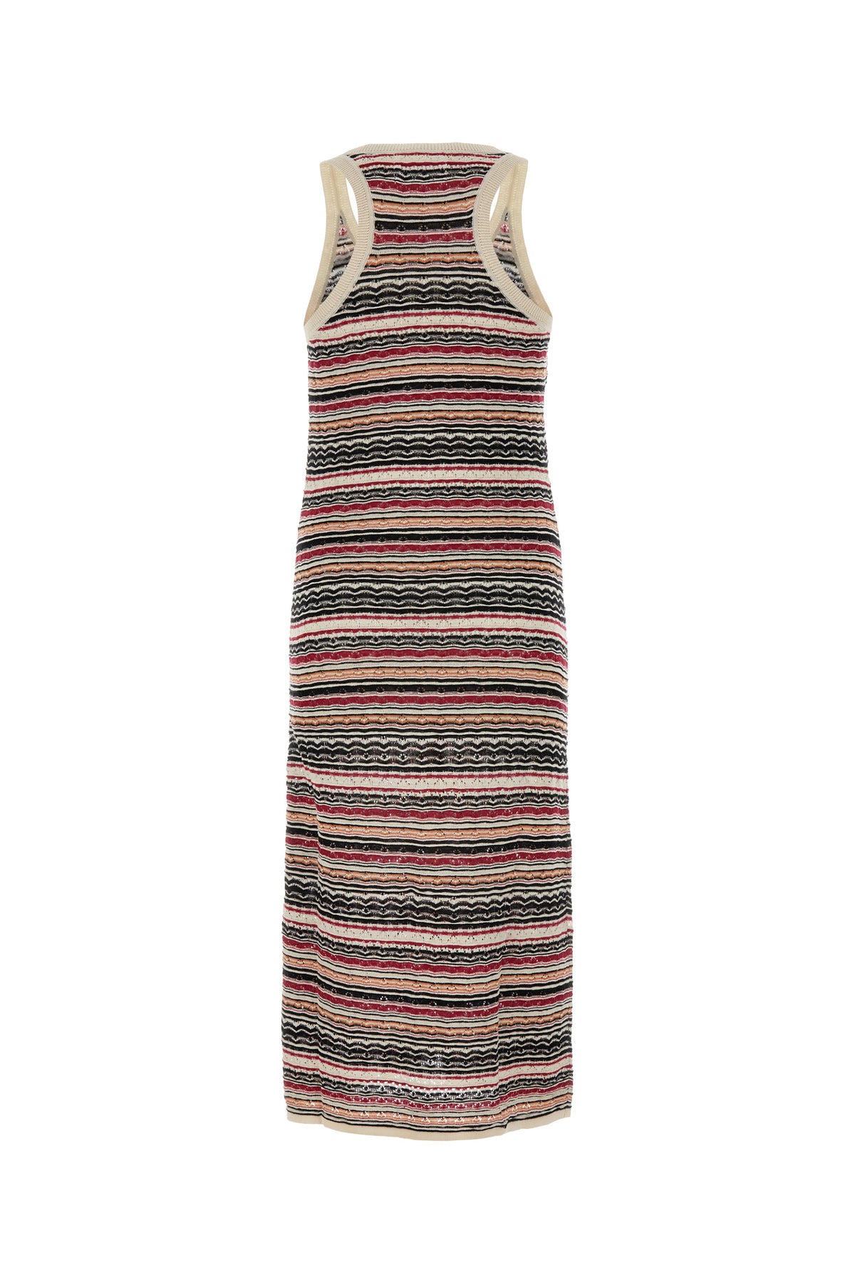 Dress realized in crochet characterized by striped embroidery on the entire surface.
