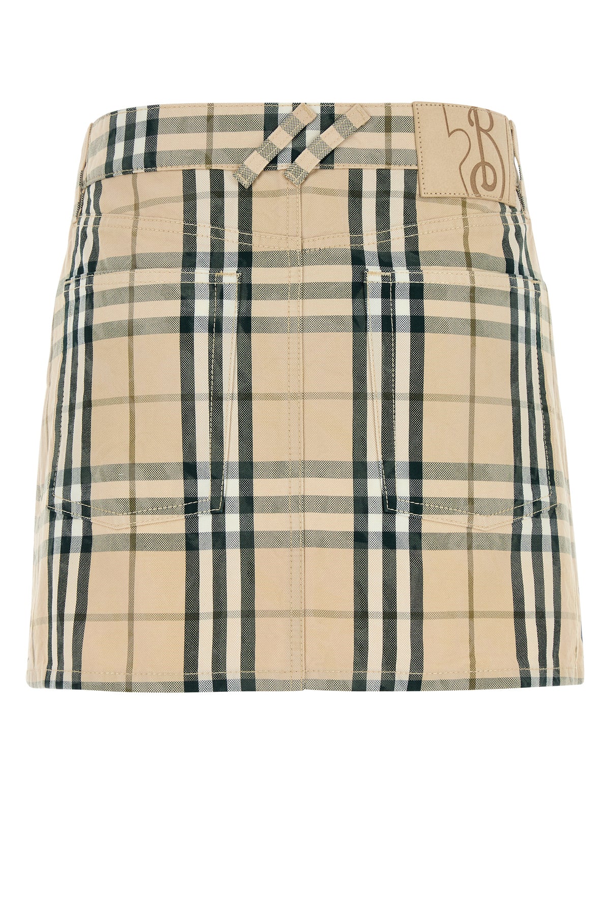 Mini skirt realized in pure cotton denim characterized by Burberry Check embroidery on the entire surface.