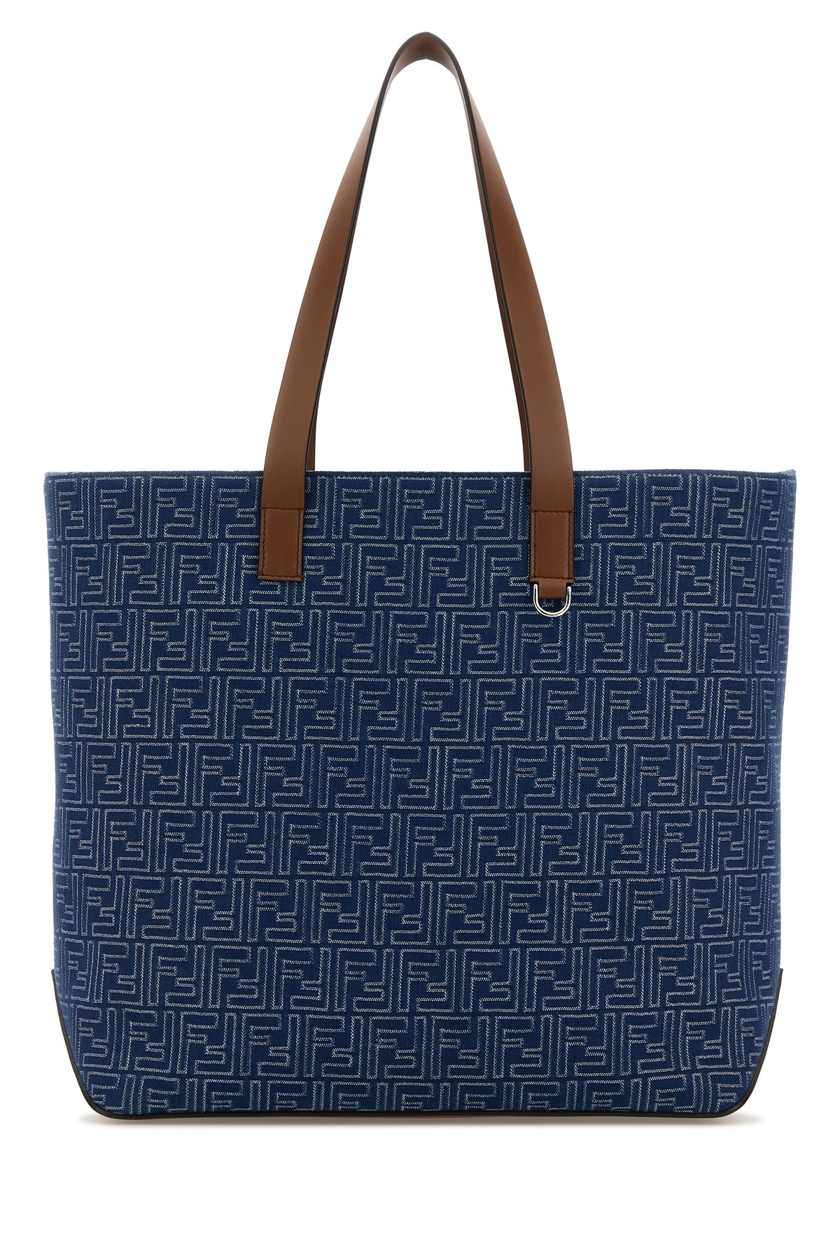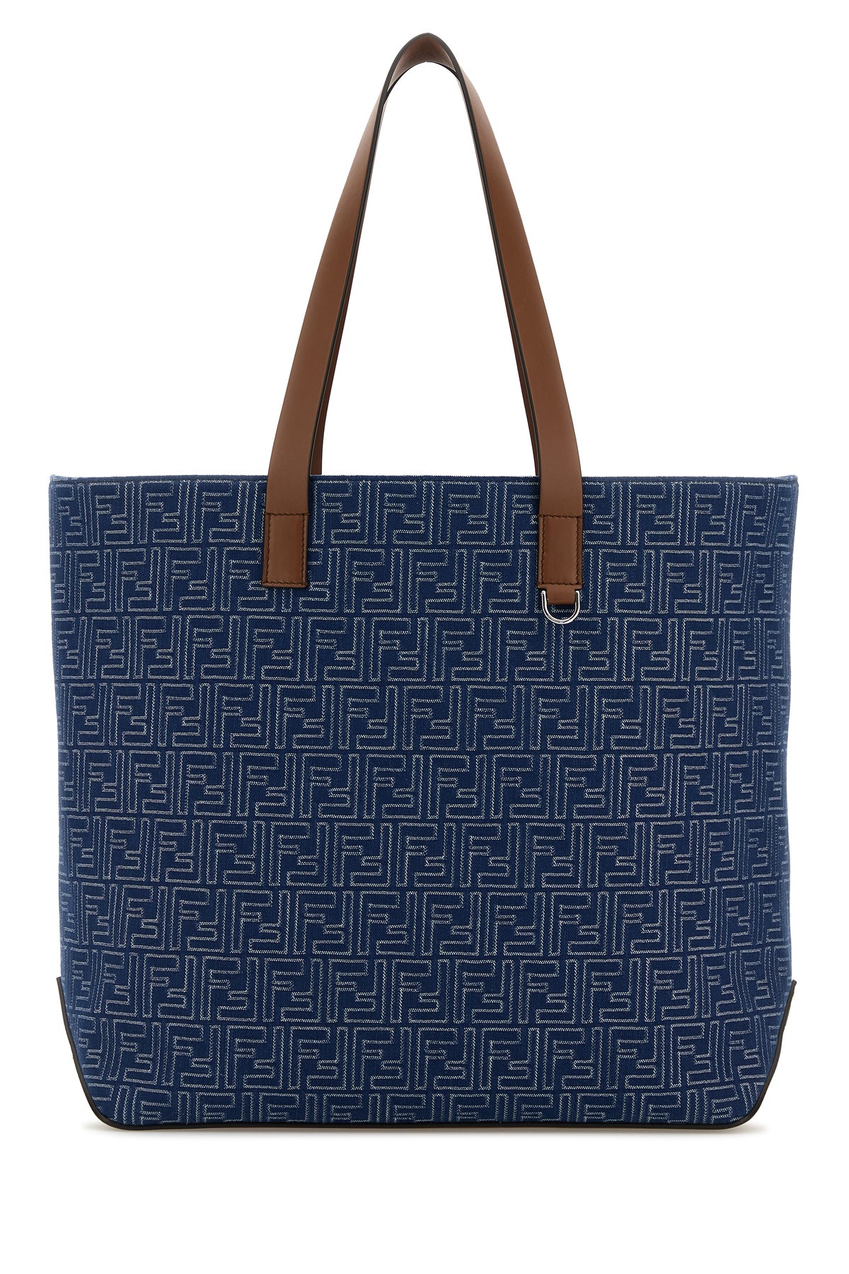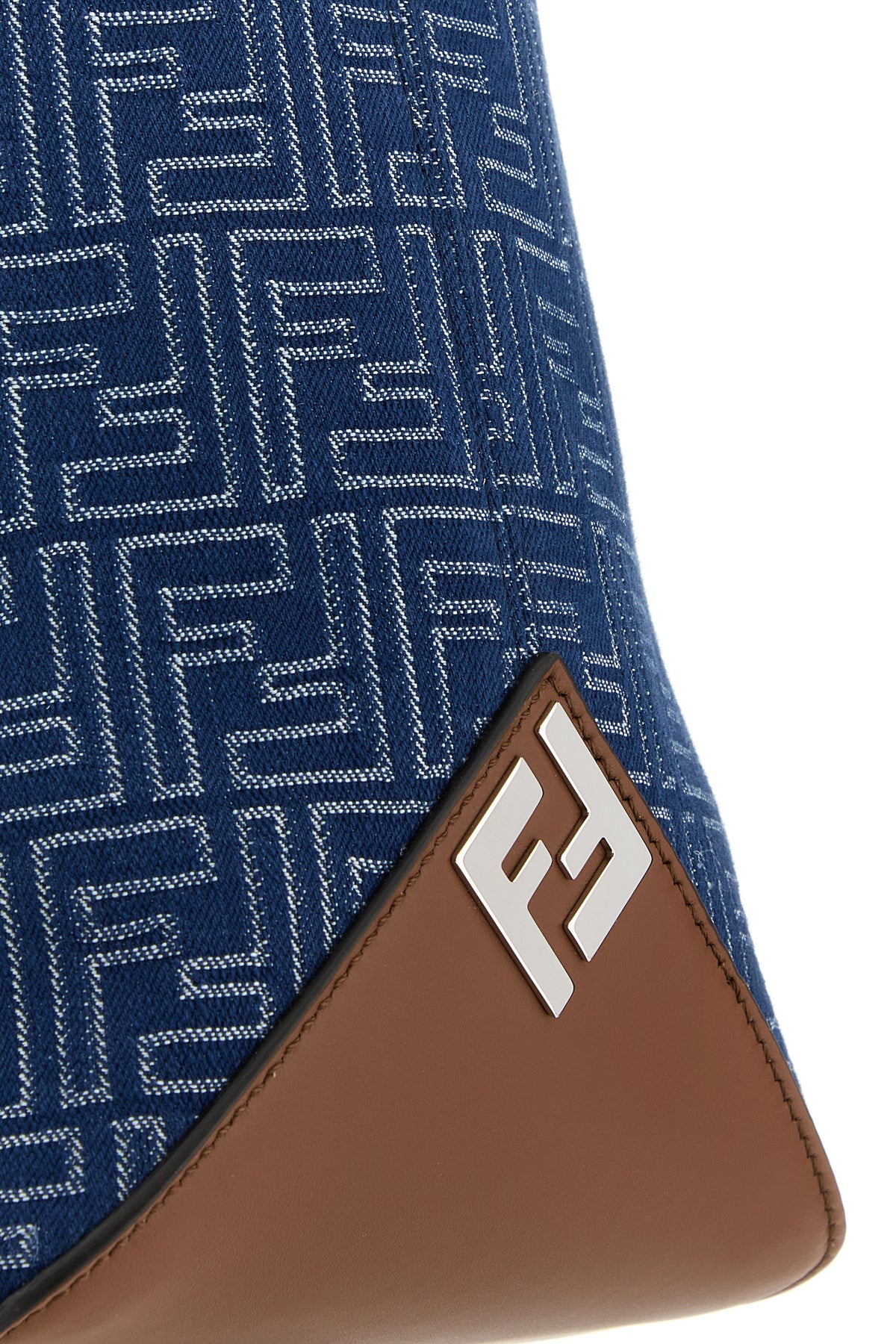 Shopping bag realized in denim characterized by FF embroidery on the entire surface enriched by FF metal detail on the sides.