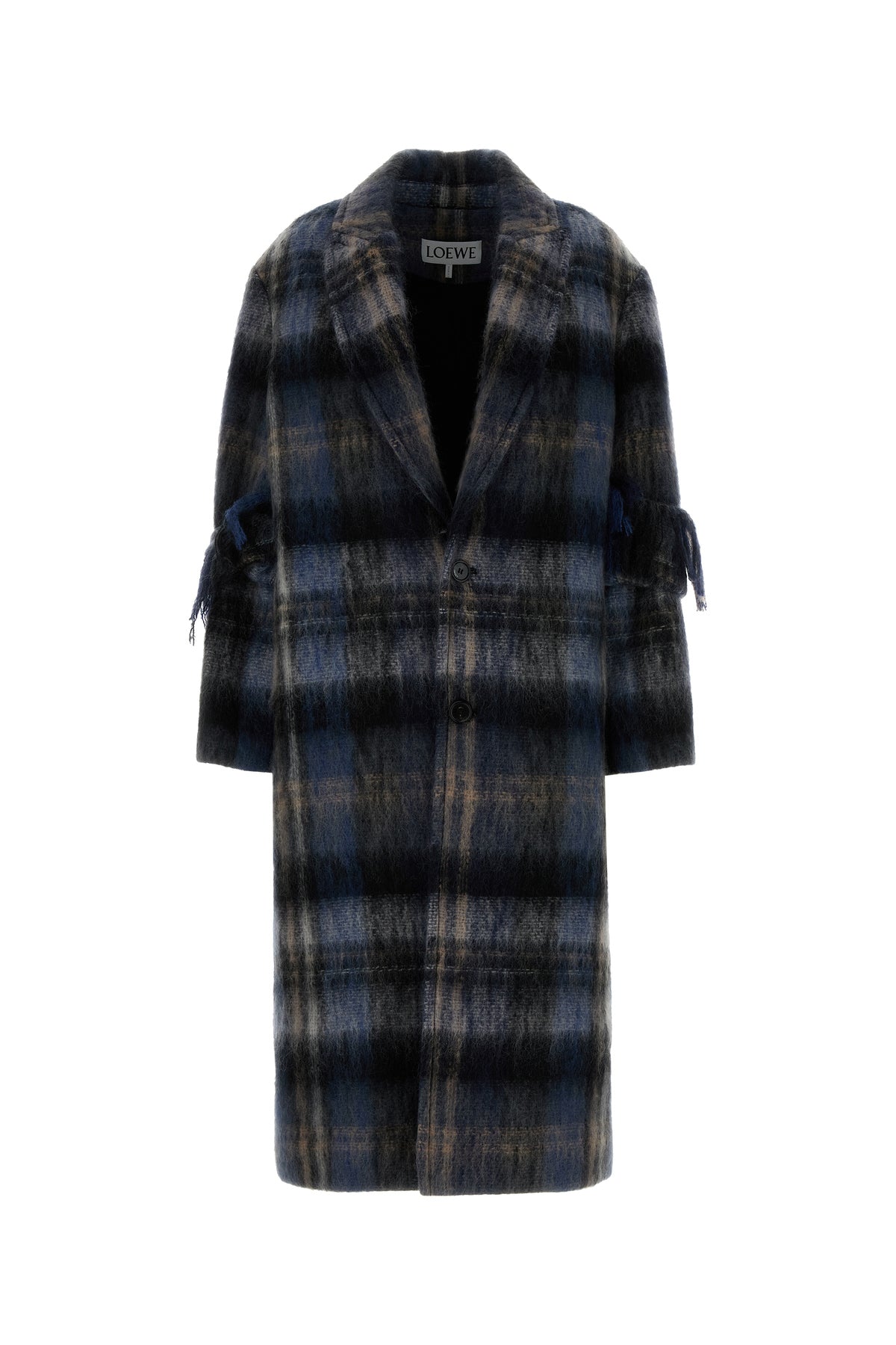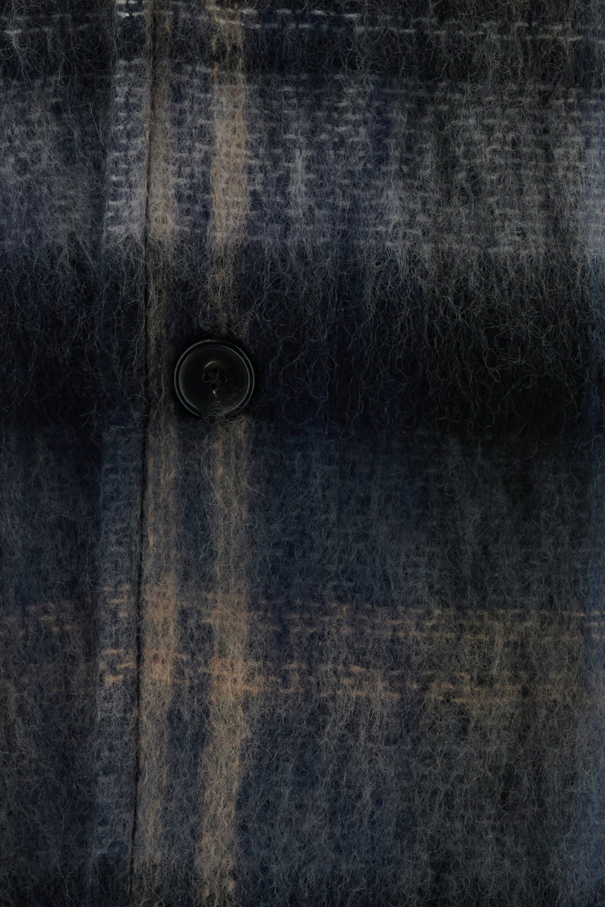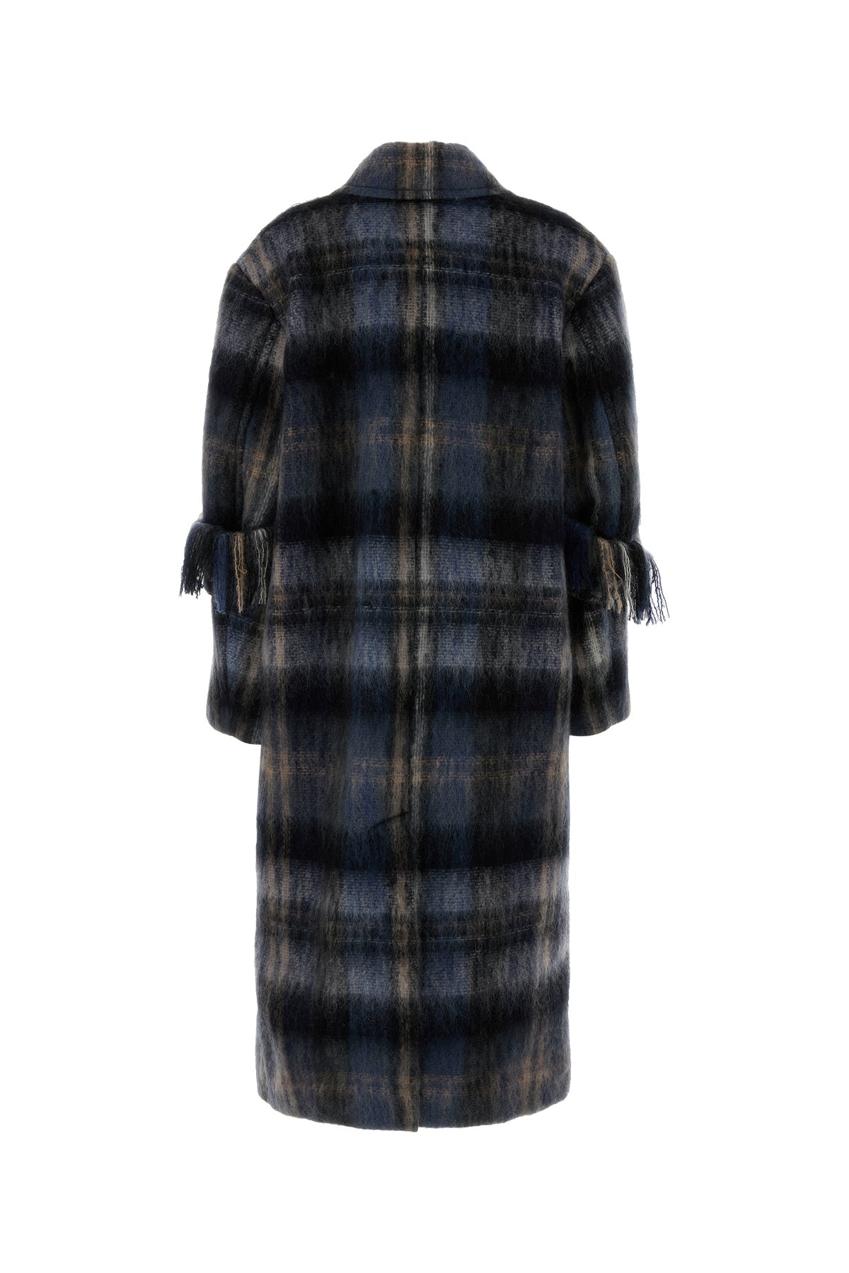 Coat realized in mohair blend characterized by checked embroidery on the entire surface enriched by fringed on the sleeves.