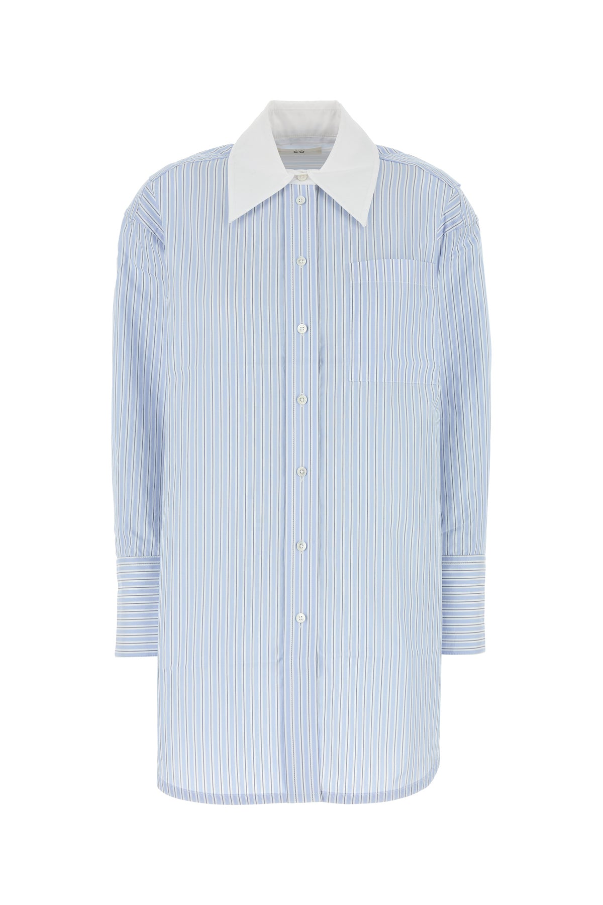Oversize shirt realized in pure cotton poplin characterized by peculiar striped embroidery on the entire surface.