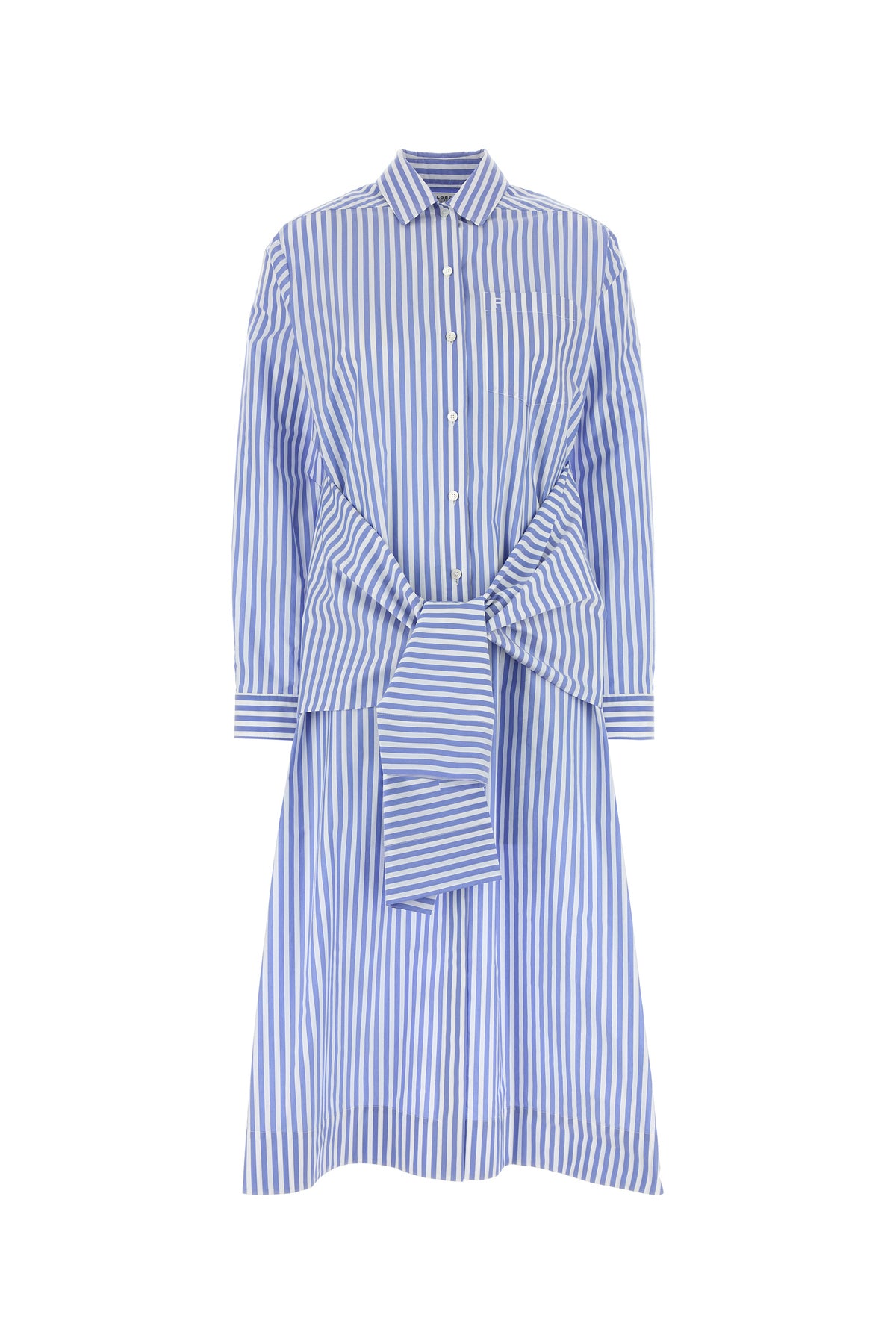 Shirt dress realized in poplin characterized by striped embroidery on the entire surface and embroidered logo on the chest.