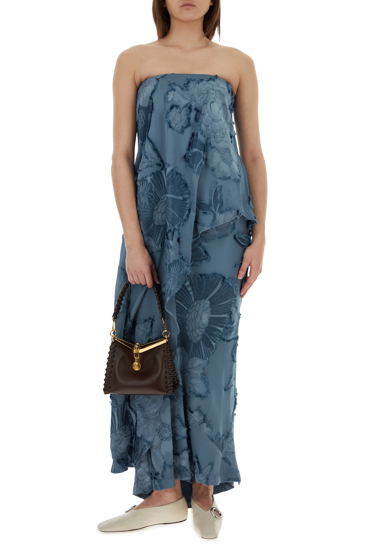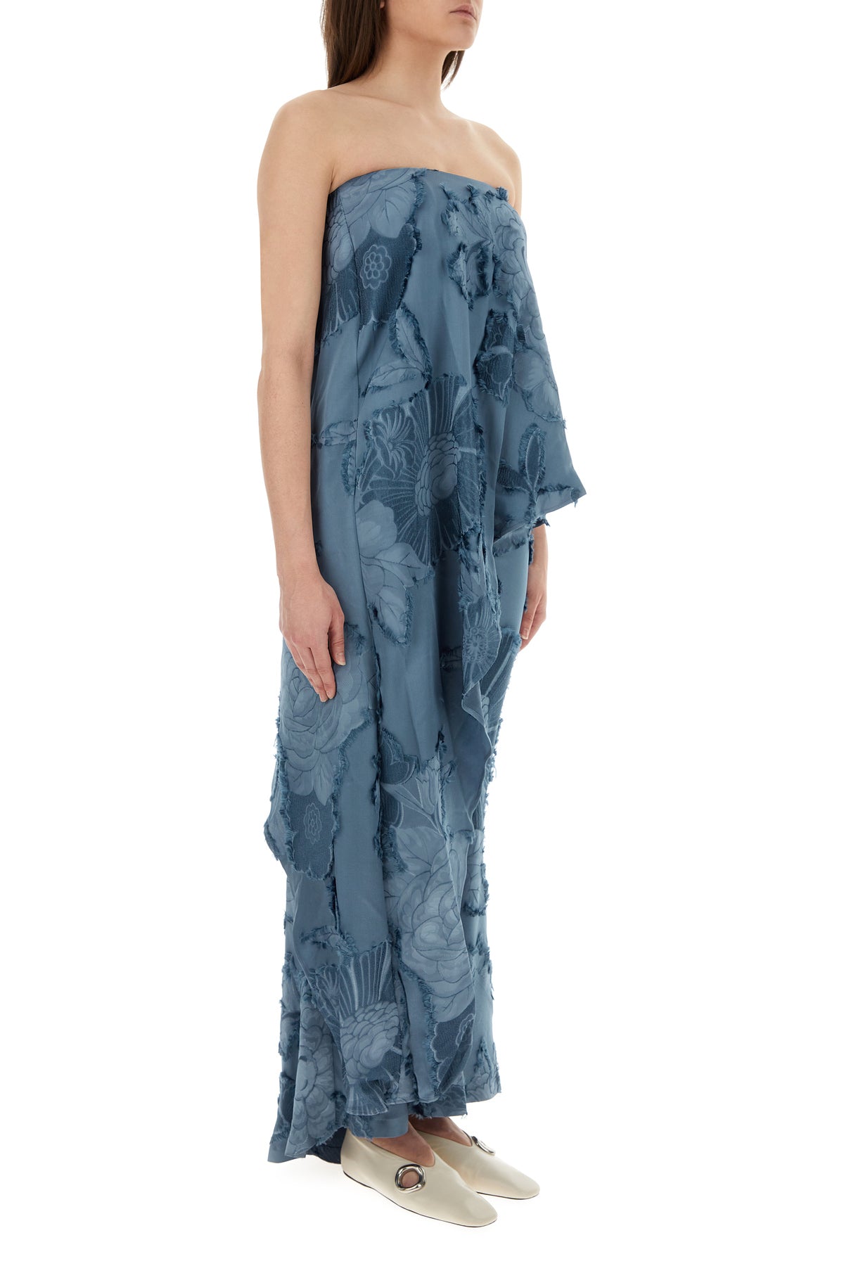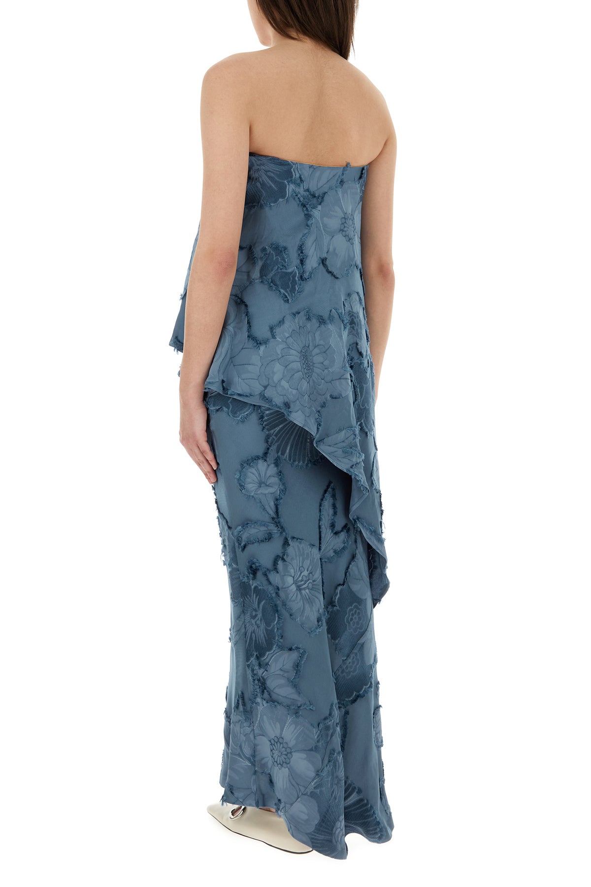 Asymmetric top realized in viscose characterized by peculiar tonal floral print on the entire surface.