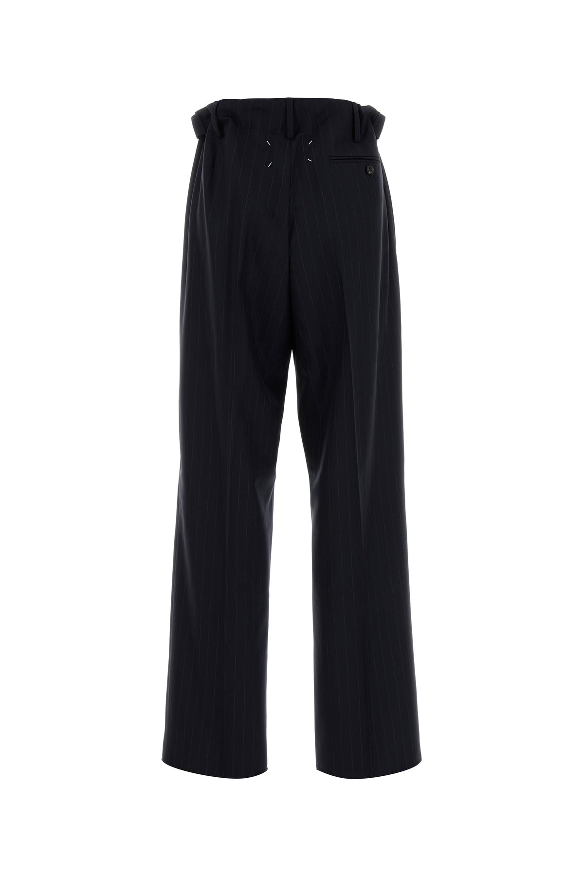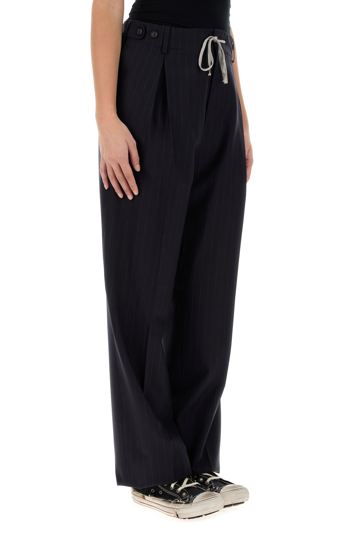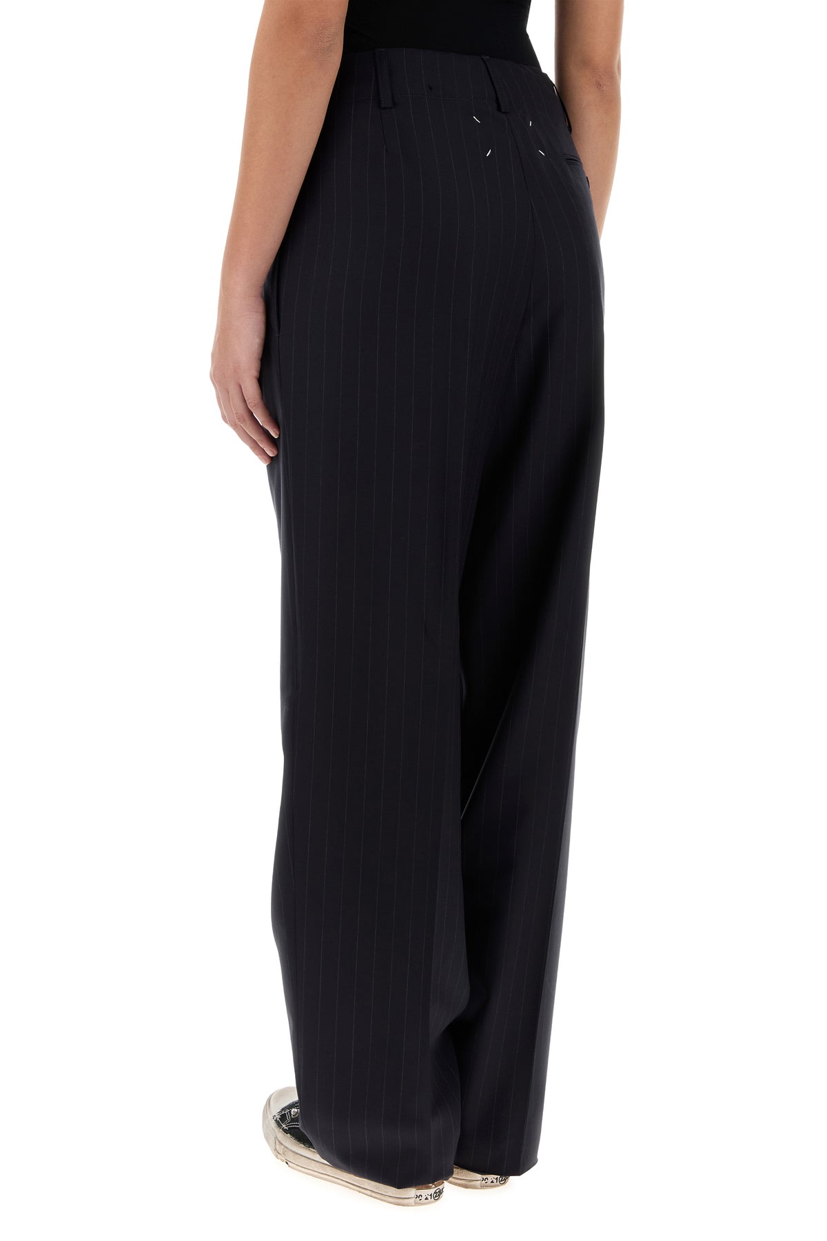 Palazzo pant realized in pure wool characterized by pinstriped embroidery on the entire surface and iconic contrasting stitching at the back.