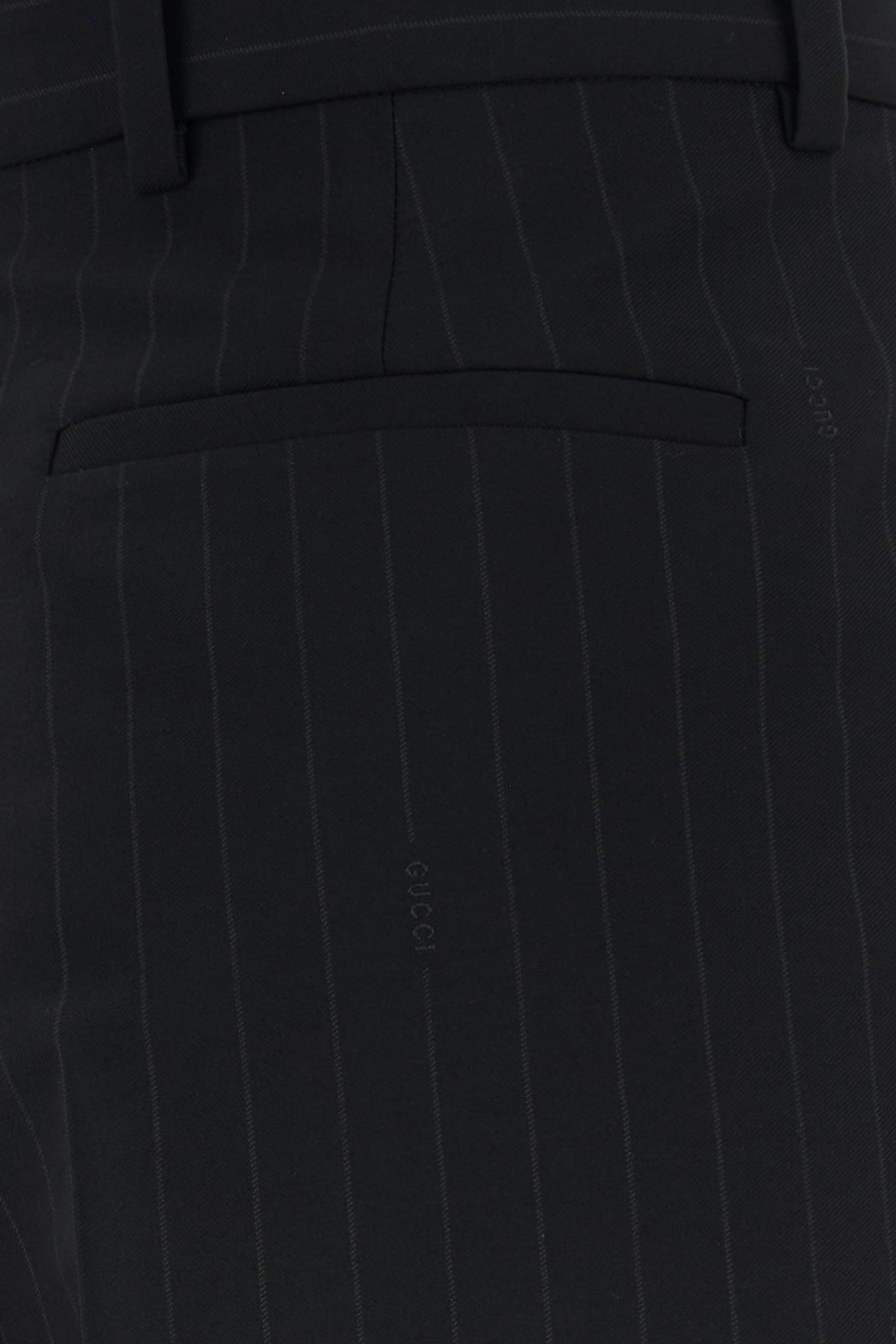 Pant realized in pure wool characterized by pinstriped motif embroidery on the entire surface.
