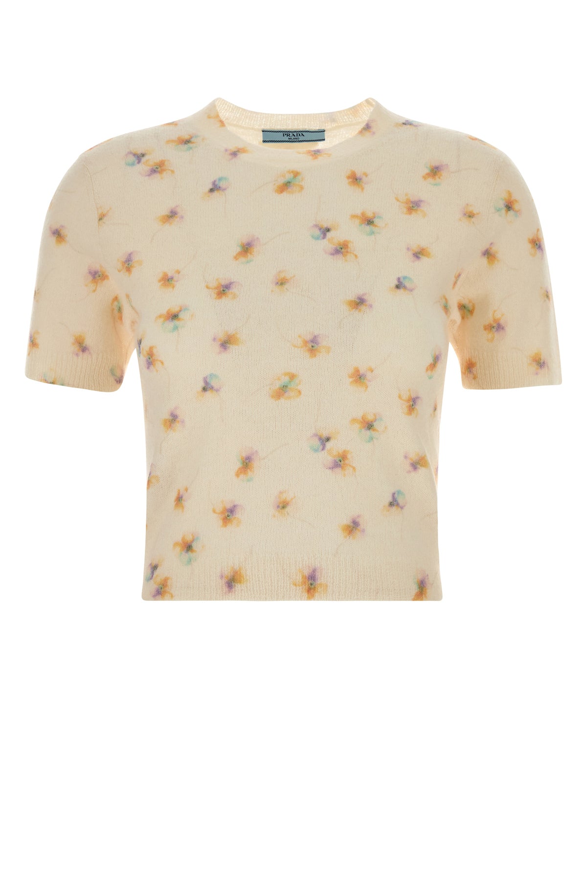 Short-sleeves sweater realized in pure virgin wool characterized by floral embroidery on the entire surface.