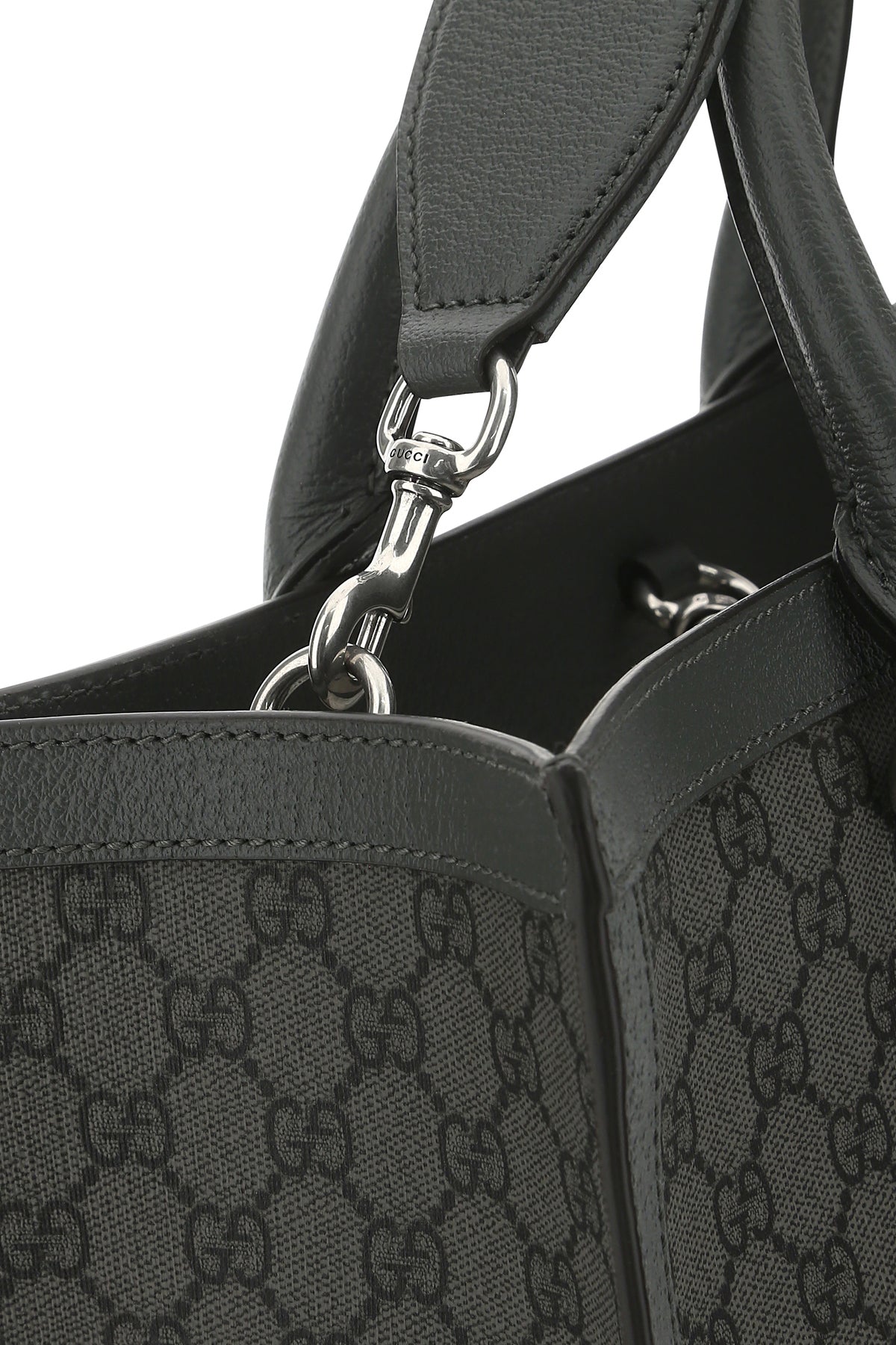 Shopping bag realized in GG Supreme fabric and pebble leather enriched by metal GG detail at the front.