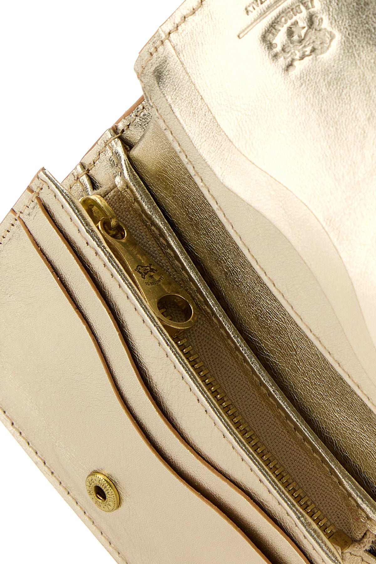 Wallet realized in laminated leather characterized by embossed logo at the front.
