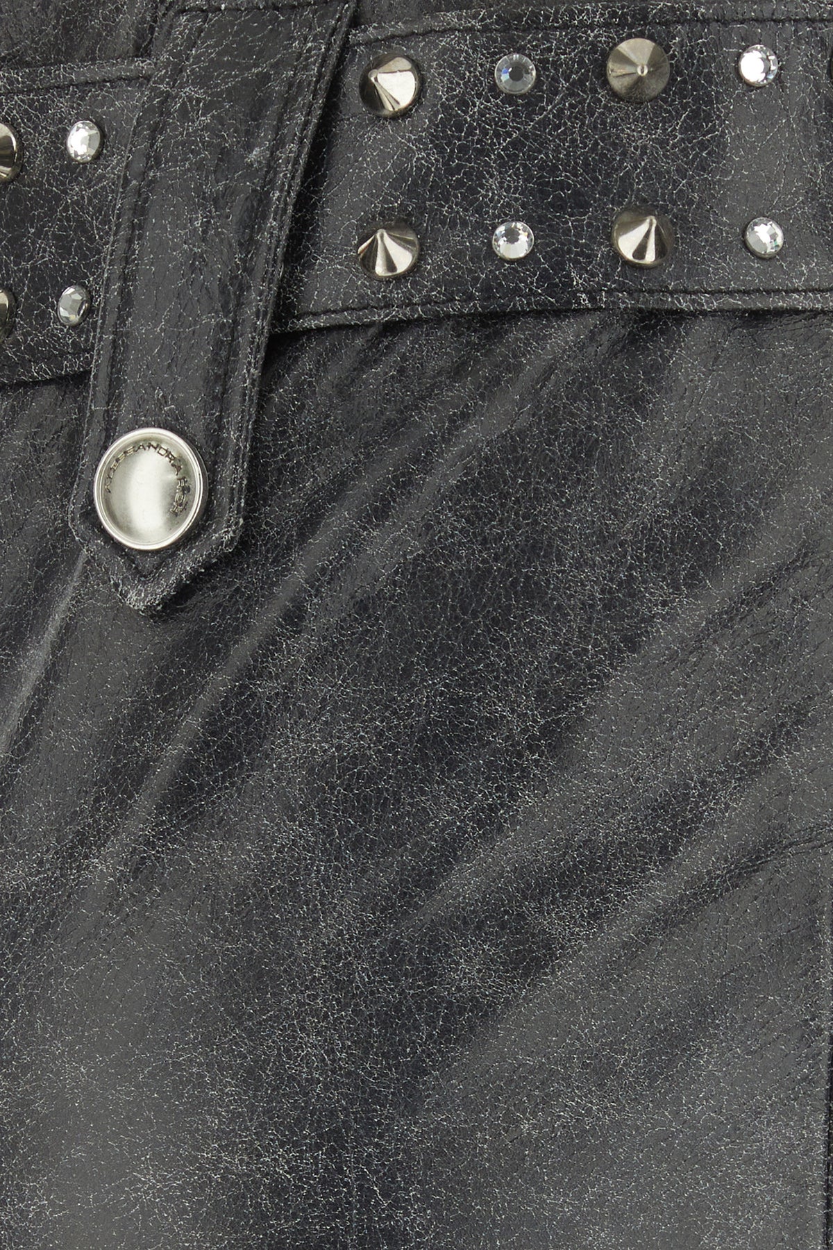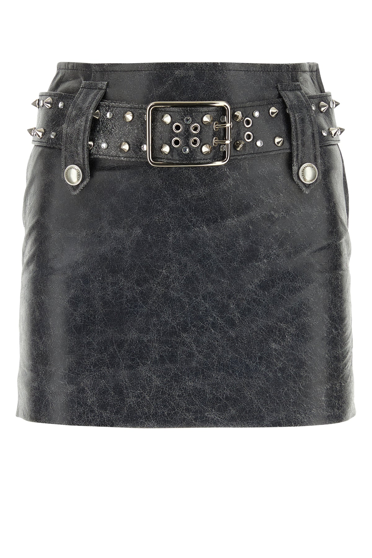 Mini skirt realized in stonewashed effect leather enriched by detachable belt with metal studs.