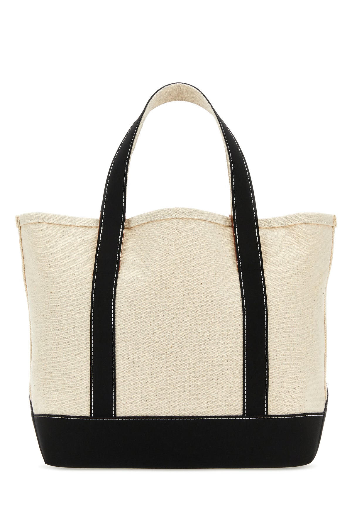 Shopping bag realized in pure cotton canvas characterized by contrasting logoed embroidery at the front.