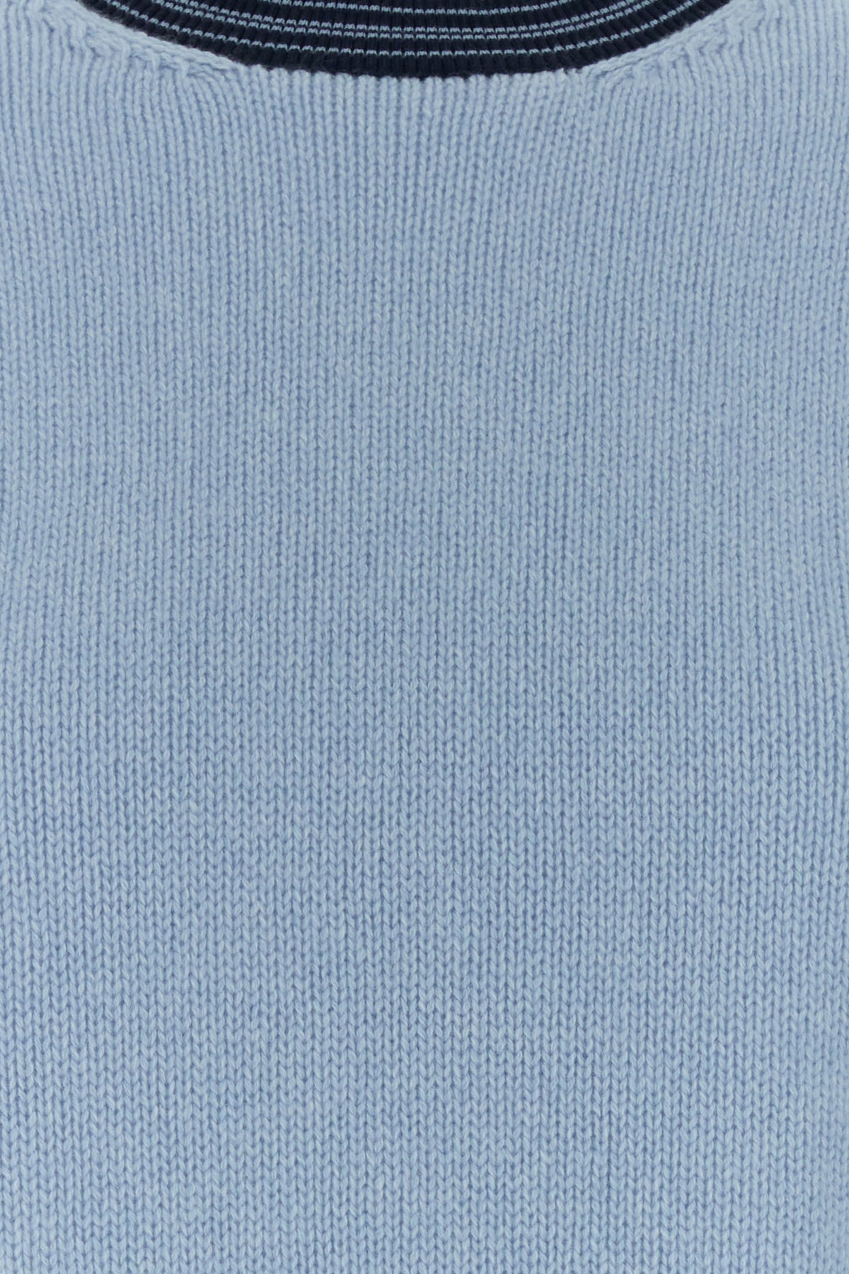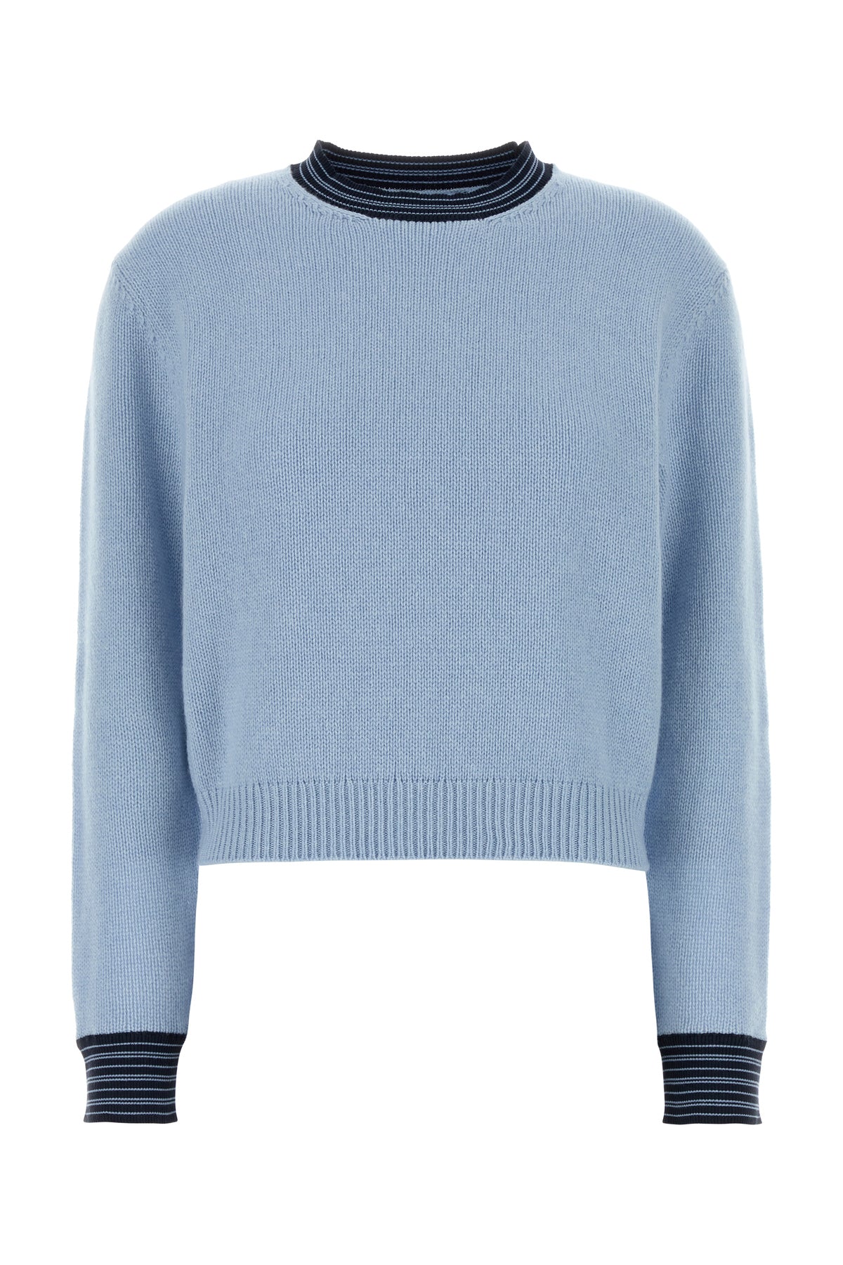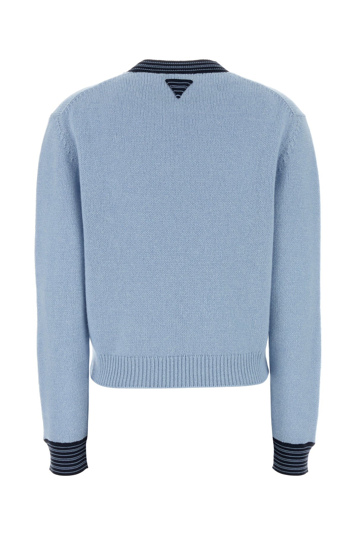 Sweater realized in cashmere blend enriched by iconic fabric triangle at the back.