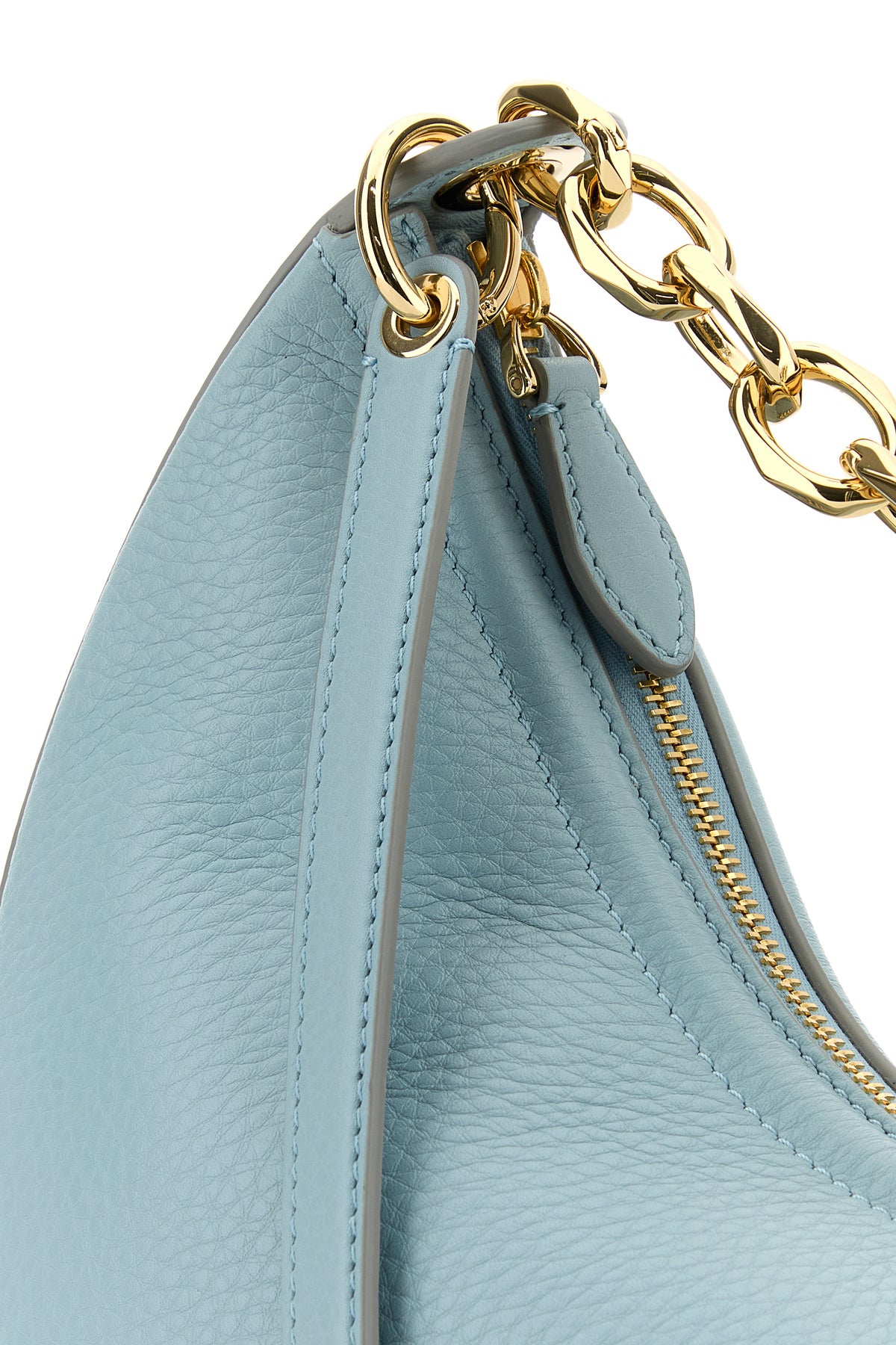 Handbag realized in pebble leather characterized by laminated printed logo at the front.